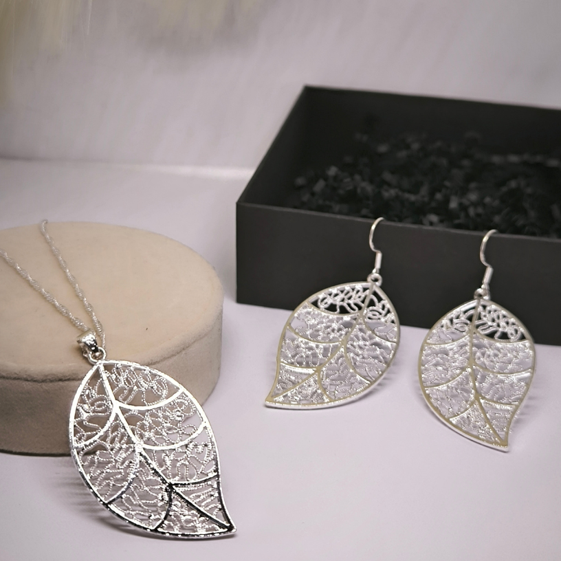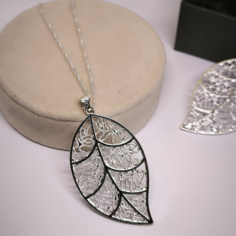 Kas otsite viisi, kuidas täiendada oma välimust nooruslike ja elegantsete aktsentidega? See ehete komplekt on just see, mida vajate! Lehekujuline kaelakee, mille pikkus on 45 cm, sobib suurepäraselt massiivsete rippuvate kõrvarõngastega, andes teie välimusele peenet sarmi ja elegantsi. 🌿