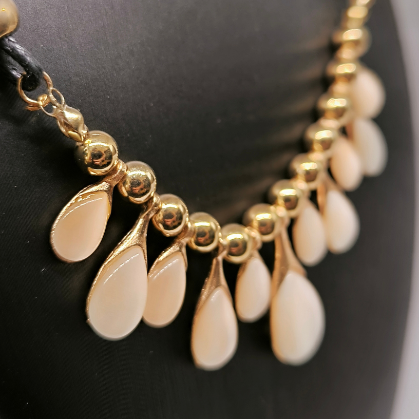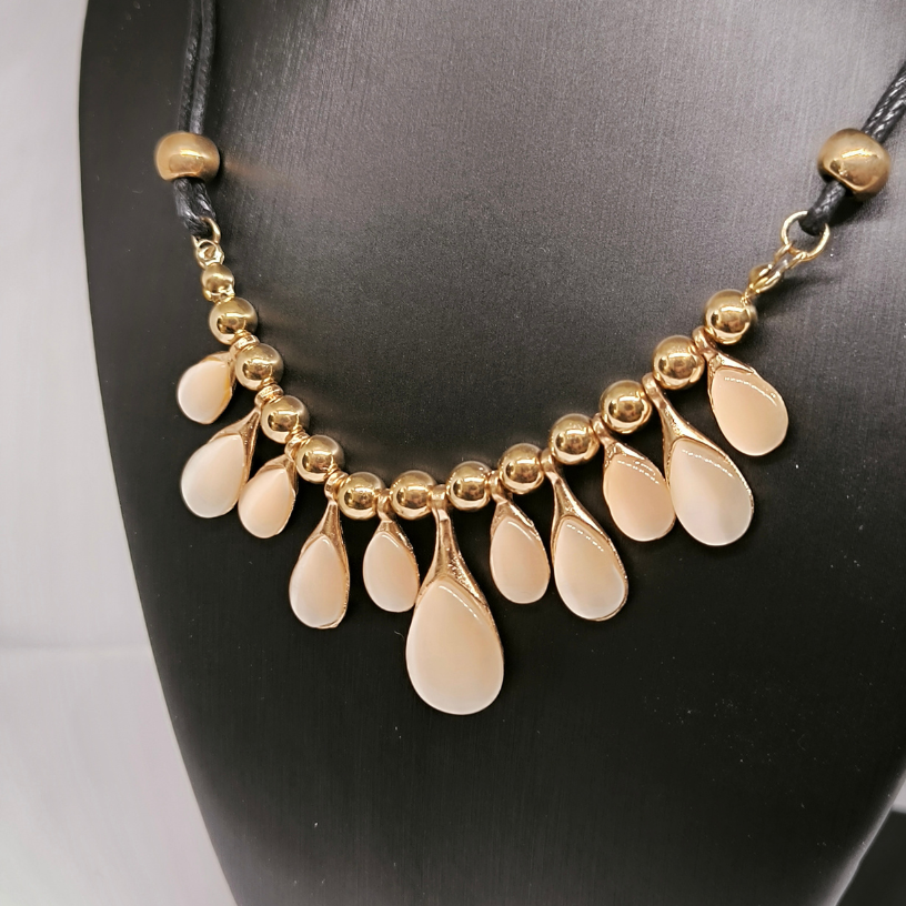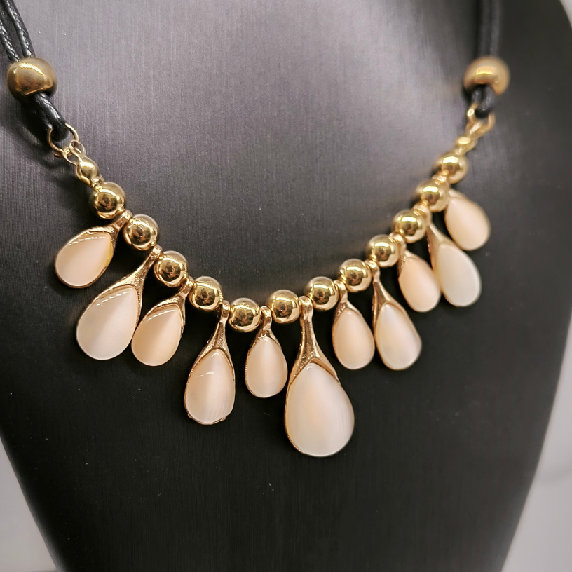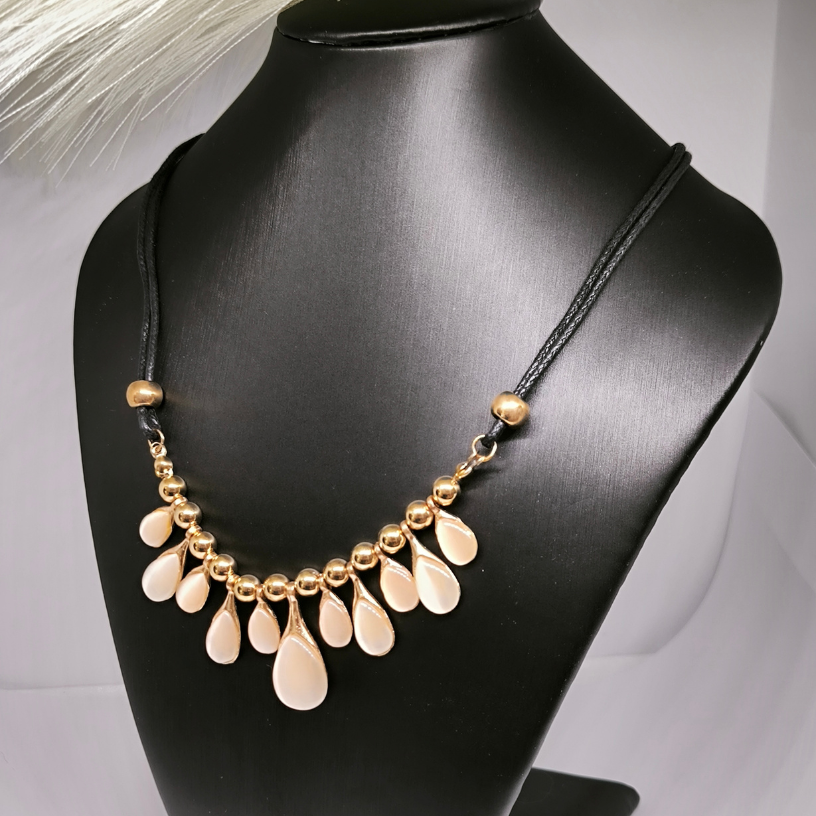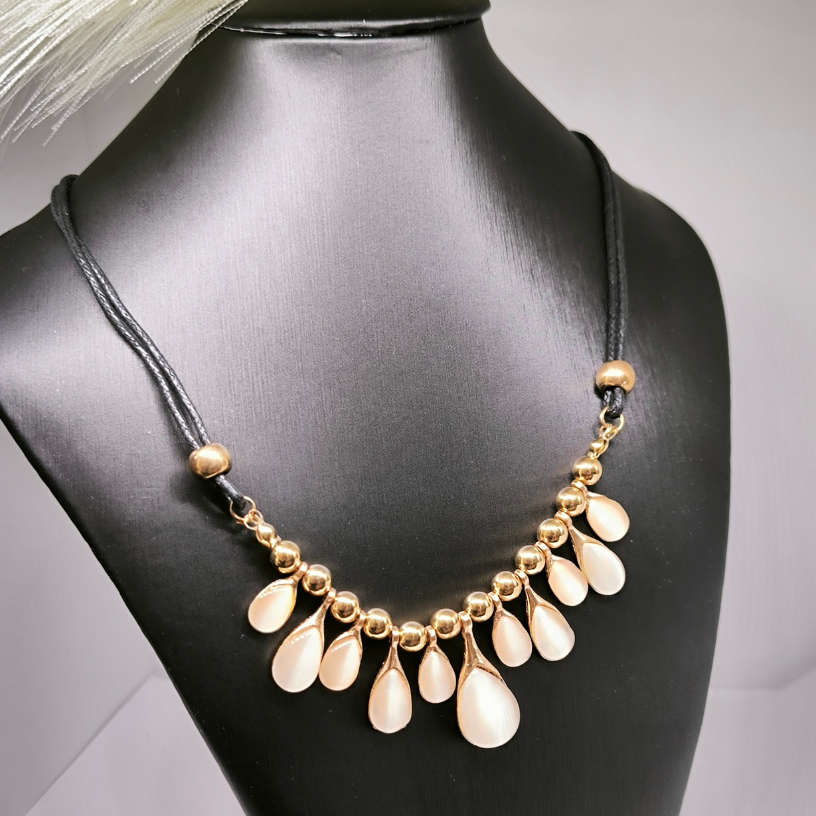 Avastage selle naiste kaelakee ainulaadne ilu, mis mitte ainult ei rõhuta teie stiili unikaalsust, vaid lisab igapäevasele elule elegantsi. Kaasaegne disain kuldsete helmestega ja pisarakujuliste opaalielementidega võimaldab teil massist eristuda igas olukorras. ✨