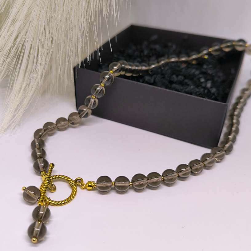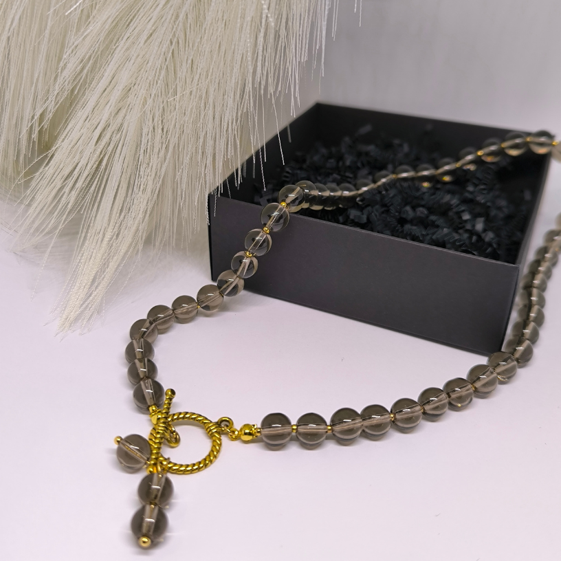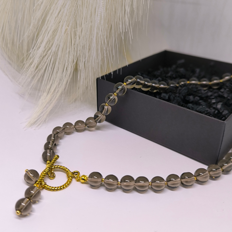 See käsitsi valmistatud ehe, mis on tehtud suitsuopaali helmestest, on mitte ainult elegantne, vaid ka sümboolse tähendusega. 💎 Suitsuopaali kive peetakse rahulikkuse ja sisemise tasakaalu sümboliks, seega muutub see kaelakee mitte ainult stiili, vaid ka hinge harmoonia osaks. 🌿