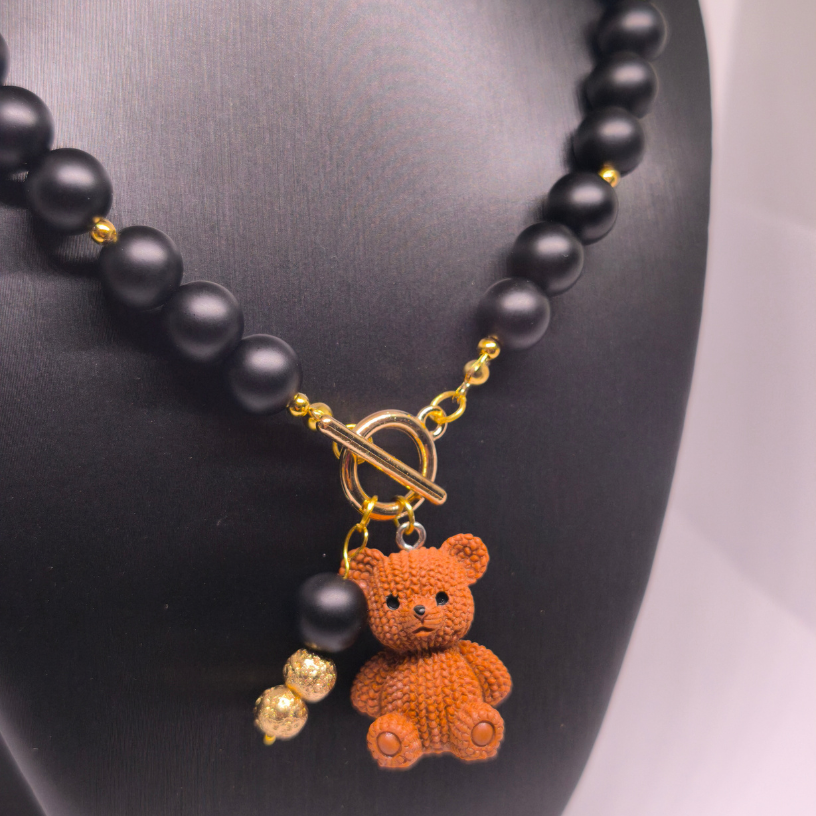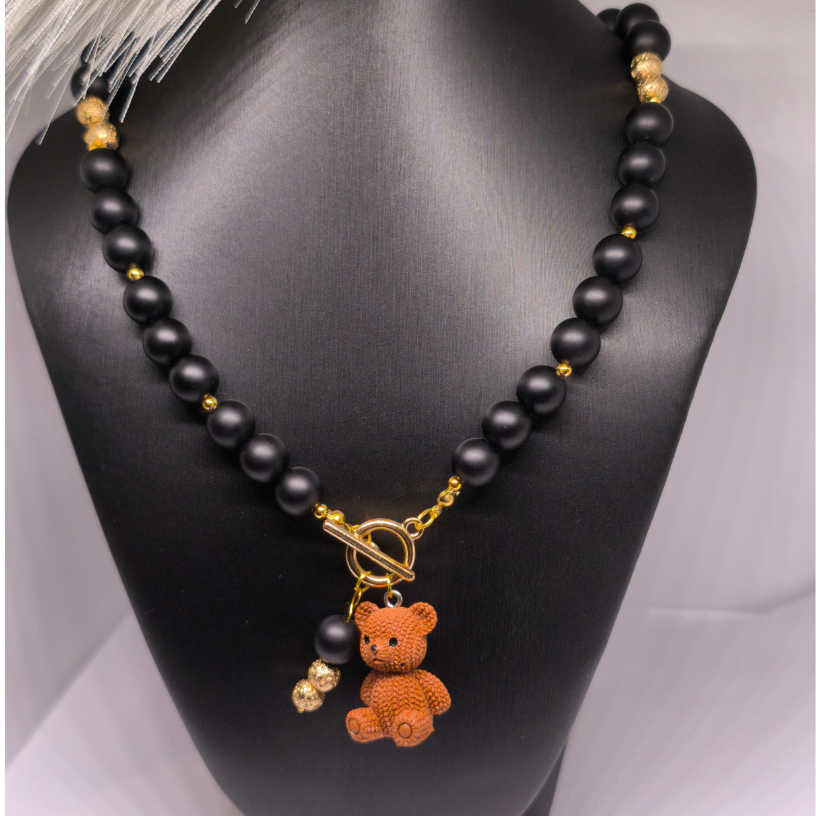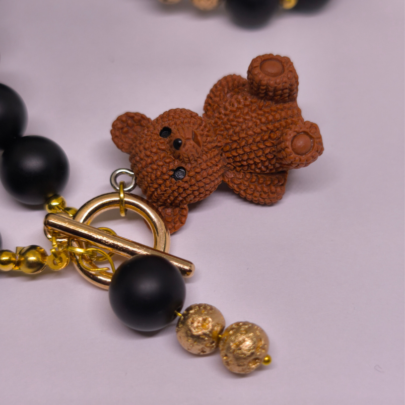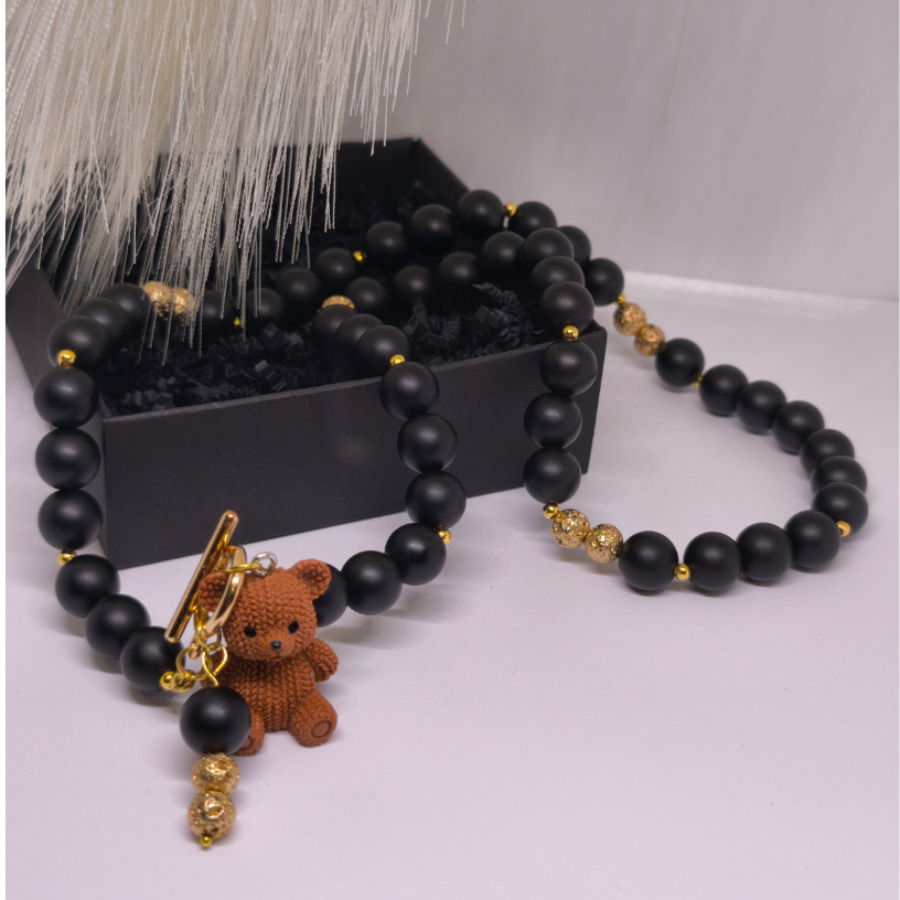 Käsitööna valminud kaelakee „Karu elegants“ – šungiidi rahu ja õrn luksus 🖤🧸