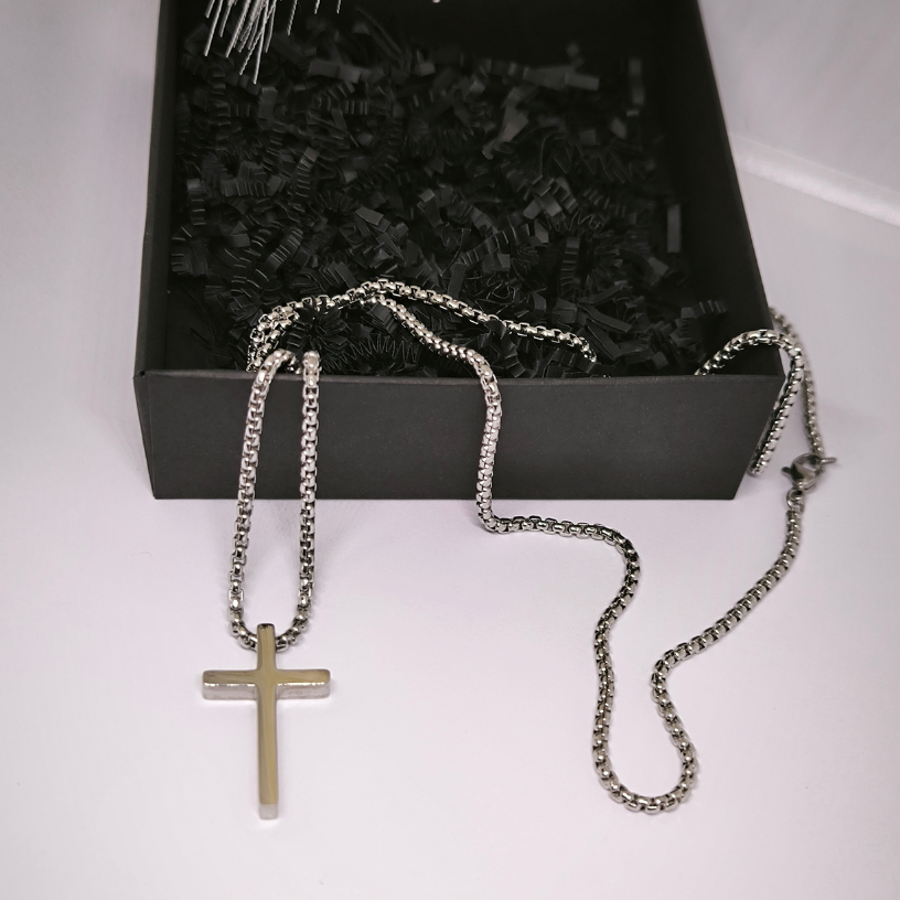 Sümboolne tähendus – rist peegeldab usku, kaitset ja tugevat iseloomu, mistõttu on see suurepärane valik mehele, kes hindab oma stiilis tähendust.