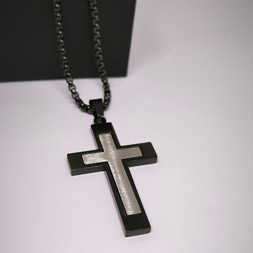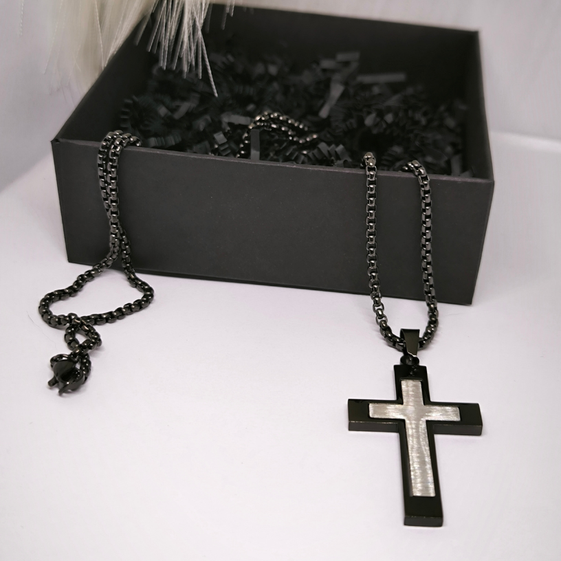 Otsid kaasaegset ja väljendusrikast kaelakeed, mis väljendaks sinu tugevust ja individuaalsust? 💪 Tumedat disaini meeste rist roostevabast terasest – ideaalne valik kaasaegsele mehele.