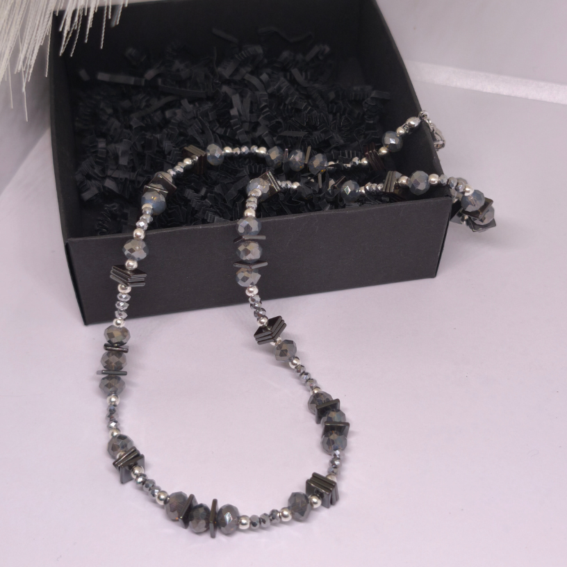 „Grafiidi sära“ on käsitsi valmistatud kaelakee, loodud naistele, kes hindavad modernset disaini, külma elegantsi ja harmoonilisi detaile. 🖤✨