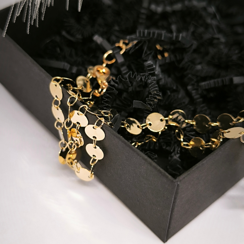 Laske endal särada selle kuldse värviga kaelakeega, mis peegeldab elegantsi ja ainulaadsust. 🌟 Iga detail on hoolikalt läbi mõeldud, et luua laitmatu stiil ja luksuse mulje. 🎀
