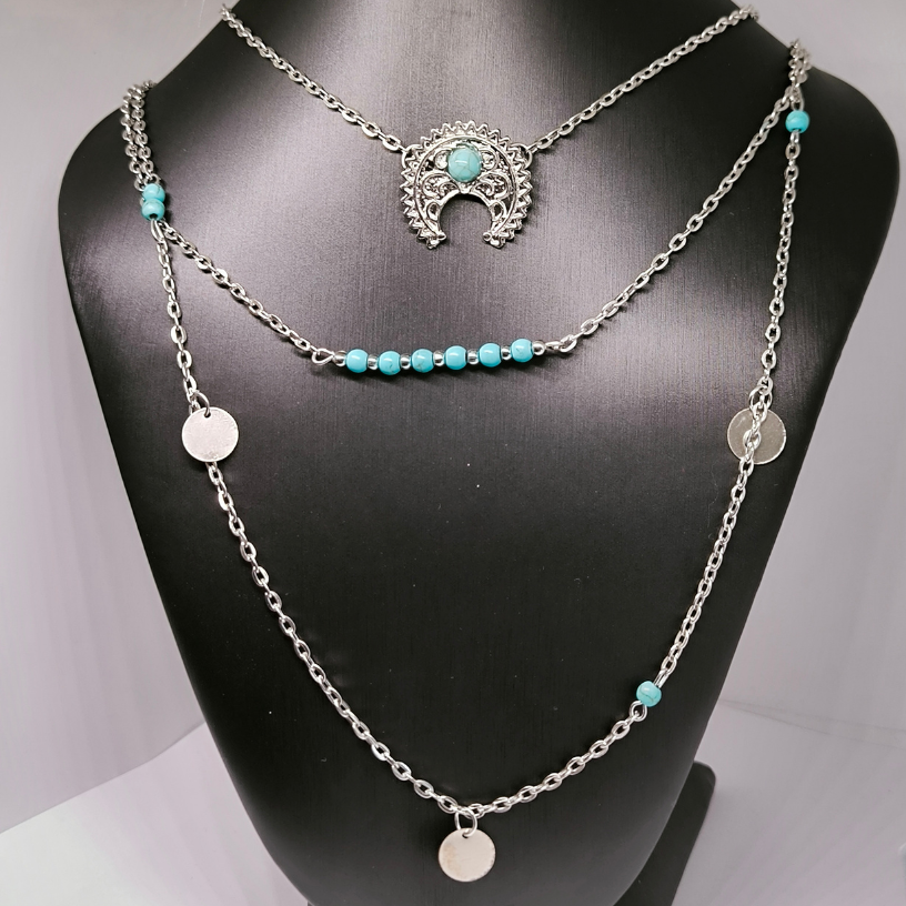 See naiste kaelakee ei ole mitte ainult aksessuaar, vaid ka teie stiili väljendus. Hõbedane kaelakee, kaunistatud türkiissiniste kivikestega ja peente detailidega, lisab elegantsi ja rafineeritust. 🎨 Selle eriline disain võimaldab teil eristuda rahvahulgast ja rõhutada oma individuaalsust. 💎