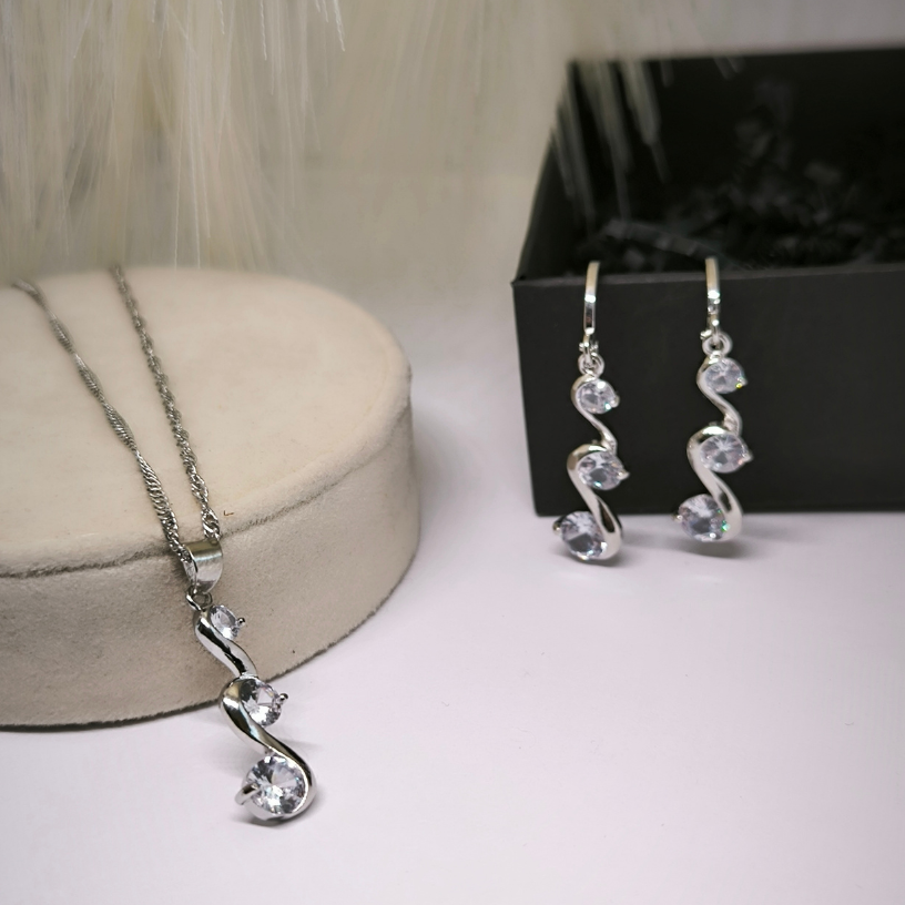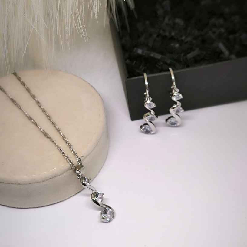 See komplekt, mis koosneb kõrvarõngastest, ketist ja kaelakeest, paistab silma säravate tsirkoonkividega ja unikaalsete vormidega. 🌟 Need pole mitte ainult ehted, vaid ka stiiliväljendus, mis sobib suurepäraselt nii igapäevaseks kandmiseks kui ka erilisteks puhkudeks. 🎉