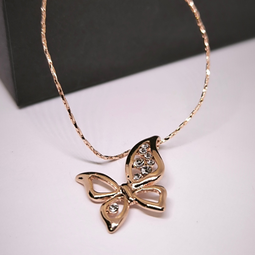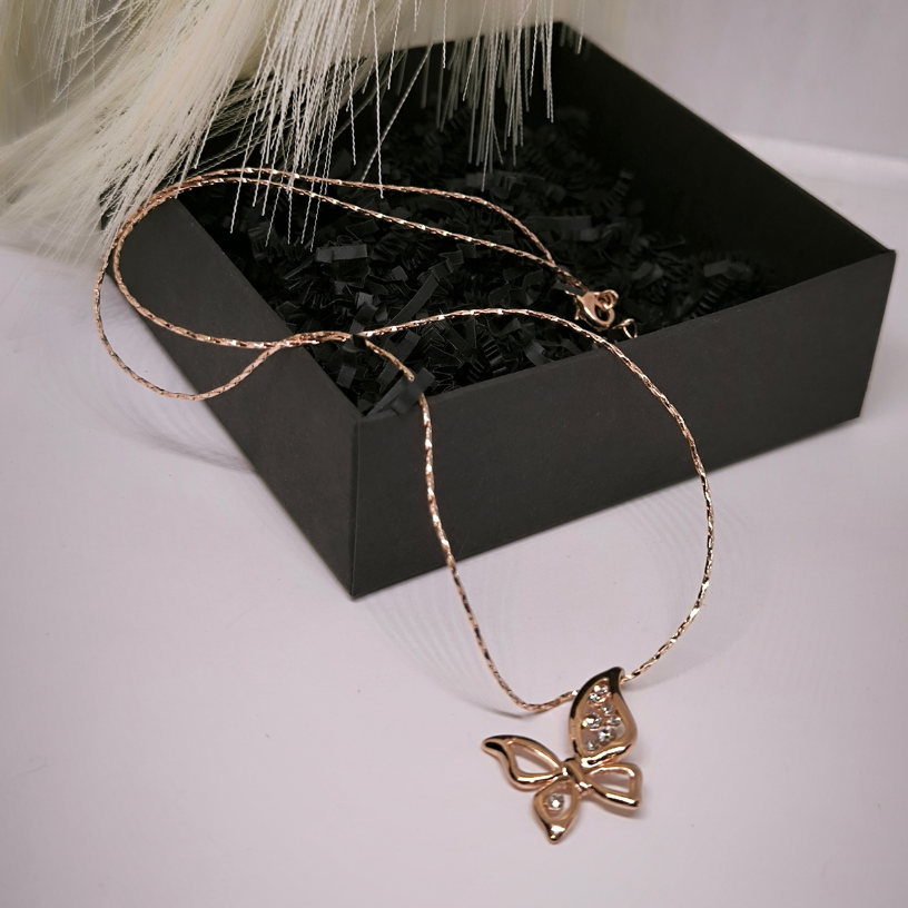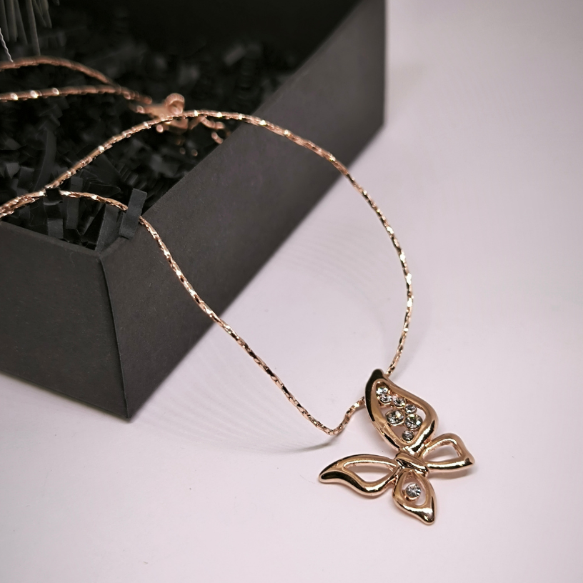 Liblika kujuline kuldne kaelakee – peen ja elegantne aksessuaar, mis sobib suurepäraselt nii igapäevaseks kandmiseks kui ka erilisteks puhkudeks. See ehe rõhutab nooruslikkust ja romantilist loomust.
