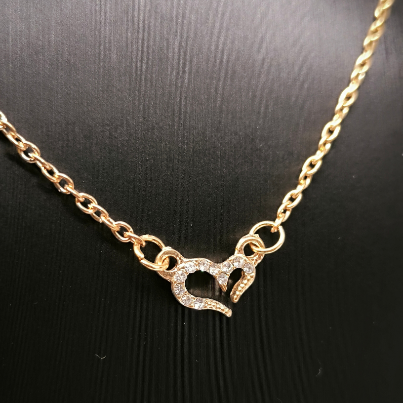 Südamekujulise stiiliga kaelakee – elegantne aksessuaar, mis peenelt täiustab teie igapäevast ja pidulikku välimust. Selle armsa ehte rikastavad väikesed kristallid ja võluv kuldne värv.