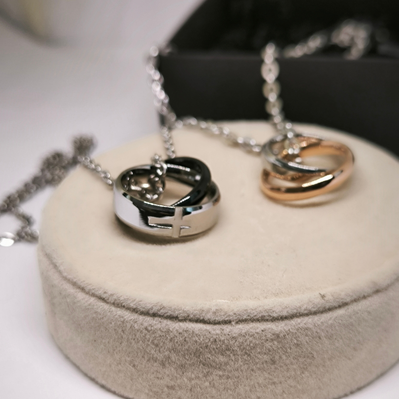 Ehetekomplekt paaridele ristidega – elegantne ja romantiline viis armastuse väljendamiseks. Need kaunilt graveeritud kaelakeed ketiga on suurepärane viis üksteise rõõmustamiseks ja teie sideme tugevdamiseks. Komplekti kuuluvad hõbedased, roosad ja mustad ripatsid, mis on valmistatud vastupidavast roostevabast terasest.