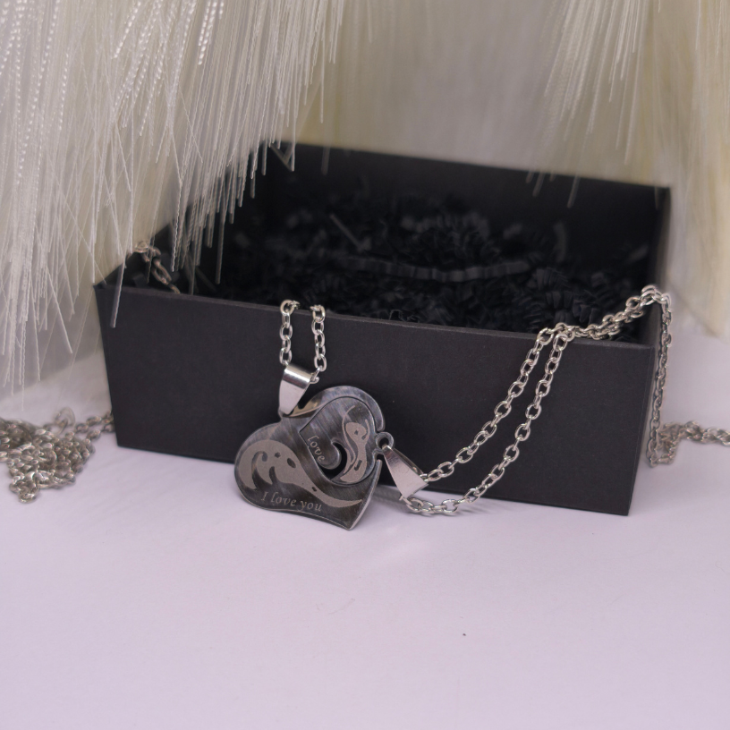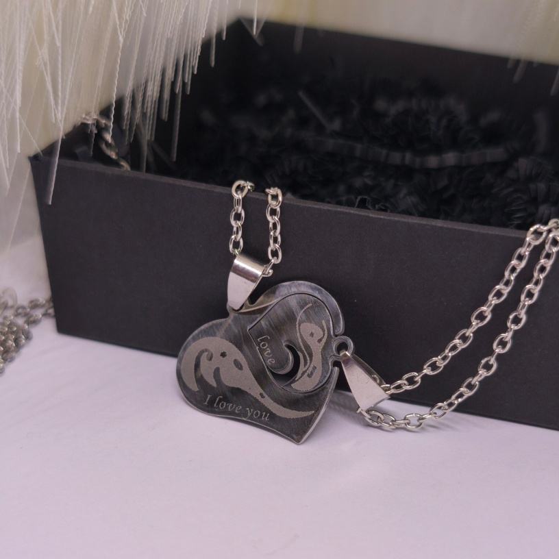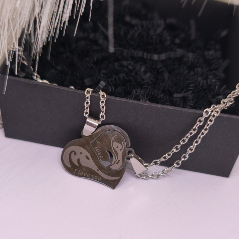 Need kaks ripatsit, mis moodustavad ühe südame ❤️, sümboliseerivad ühtsust ja igavest armastust. Igaüks neist on graveeritud fraasiga „I love you“, mis meenutab, et tõeline armastus jääb alati püsima. Tänu peenele disainile ja roostevabast terasest materjalile on need ehted mitte ainult ilusad, vaid ka vastupidavad 💎.