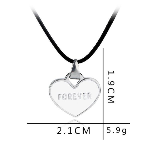 Kaelakeede komplekt paarile „Forever“ – peened ja elegantsed aksessuaarid, mis sümboliseerivad kahe inimese vahelist igavest armastust ja sidet. Komplekt koosneb kahest kaelakeest: must süda kirjaga „I love you“ ja valge süda kirjaga „Forever“.