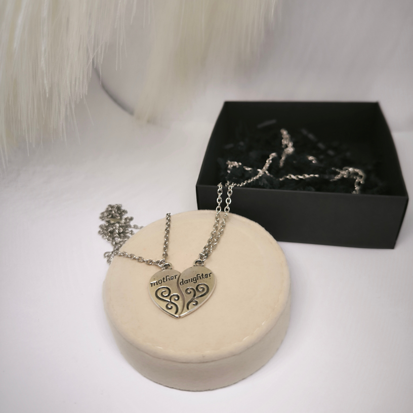 💖 Ühendage oma südamed selle erilise kaheosalise kaelakeega! 💖 Ideaalne valik emale ja tütrele, kes soovivad väljendada oma armastust ja lähedust. Südamekujulise ripatsi klassikaline disain, mis on kergesti jagatav kaheks osaks, sümboliseerib katkematut sidet kahe kalli inimese vahel. Iga poole peal on graveeritud sõnad „mother“ ja „daughter“, mistõttu on see suurepärane kingitus, mis aitab väljendada kõige soojemaid tundeid. ✨