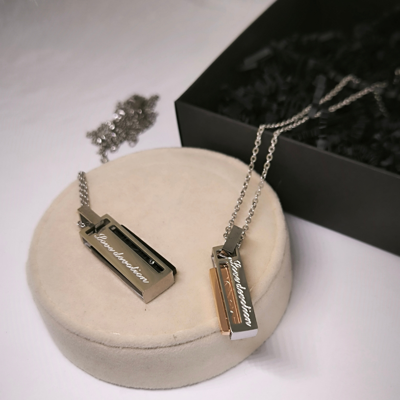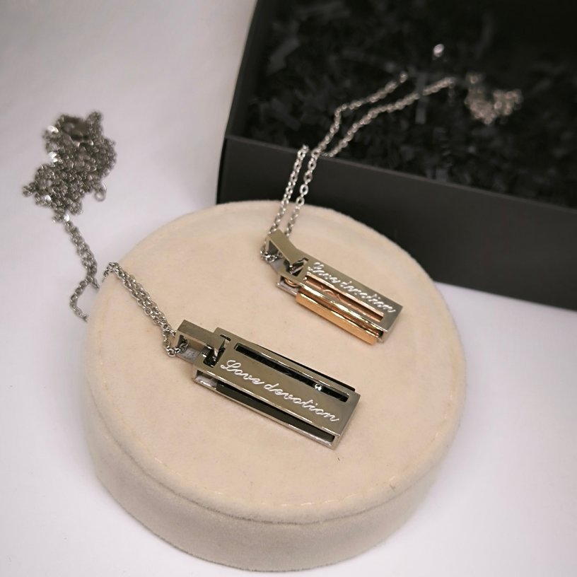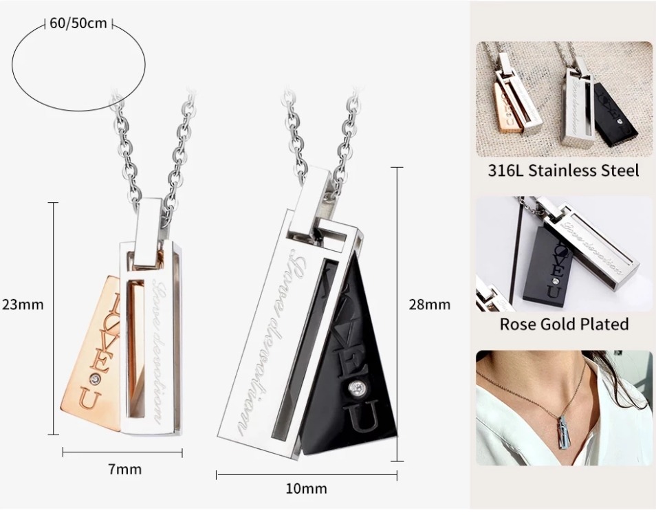 Need kaelakeed on mitte ainult stiilne aksessuaar, vaid ka teie suhete sümbol. 🎁 Iga komplekt sisaldab kahte roostevabast terasest ripatsit, mis säilitavad oma sära ja kvaliteedi pikaks ajaks. 🌟 Meeste kett 55 cm ja naiste kett 45 cm teevad need kaelakeed sobivaks igaks sündmuseks, olgu see aastapäev, sõbrapäev või lihtsalt soov oma armastust näidata. 💖