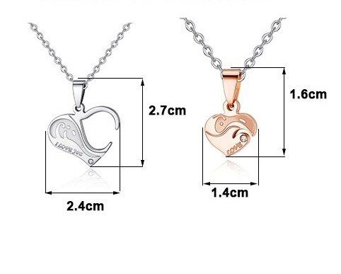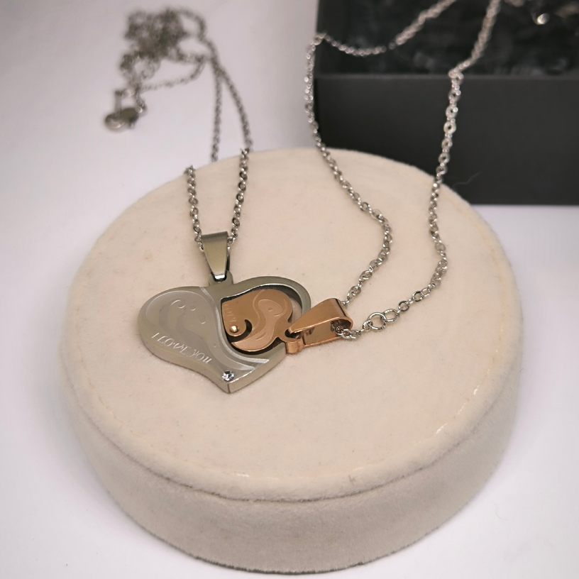 Need unikaalsed ehted on loodud sümboliseerima kahe inimese armastust ja sidet. Komplekti kuuluvad kaks hõbedast värvi ketti ja kaks kaelakee ripatsit, mis kokku panduna moodustavad südame. Ripatsitel on graveeritud sõnad „I love you“ ja „Love“, mis meenutavad teile teie tundmuste tugevust. 🌟