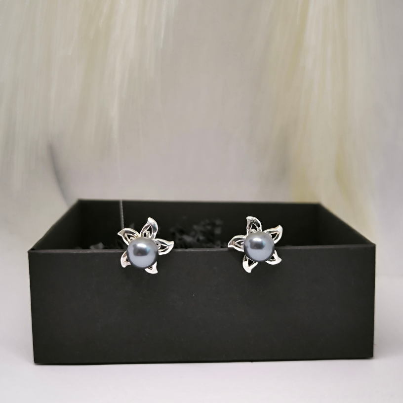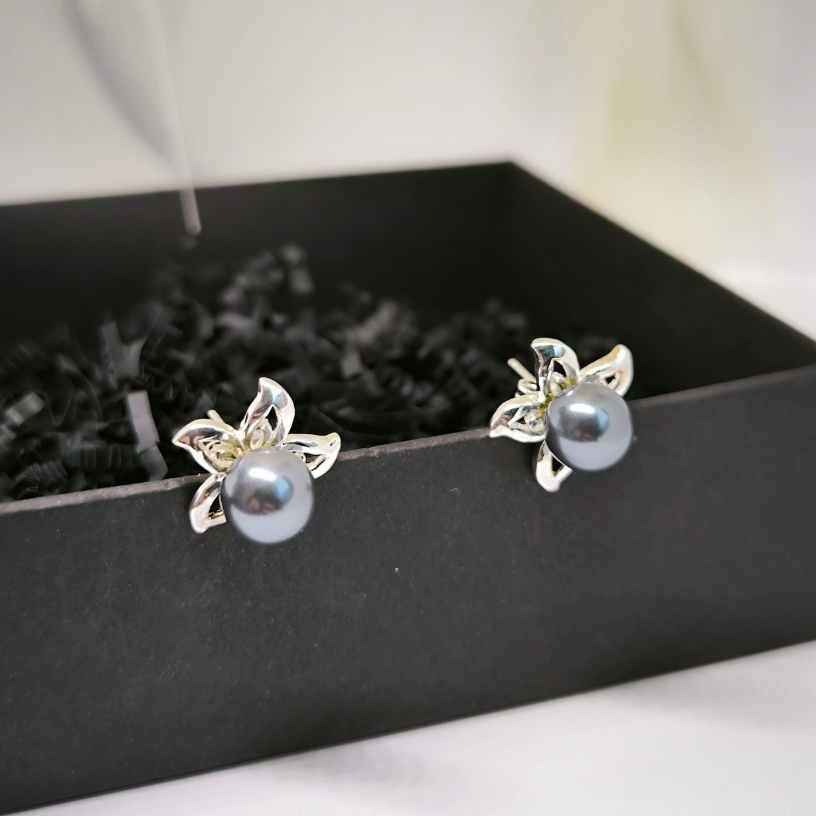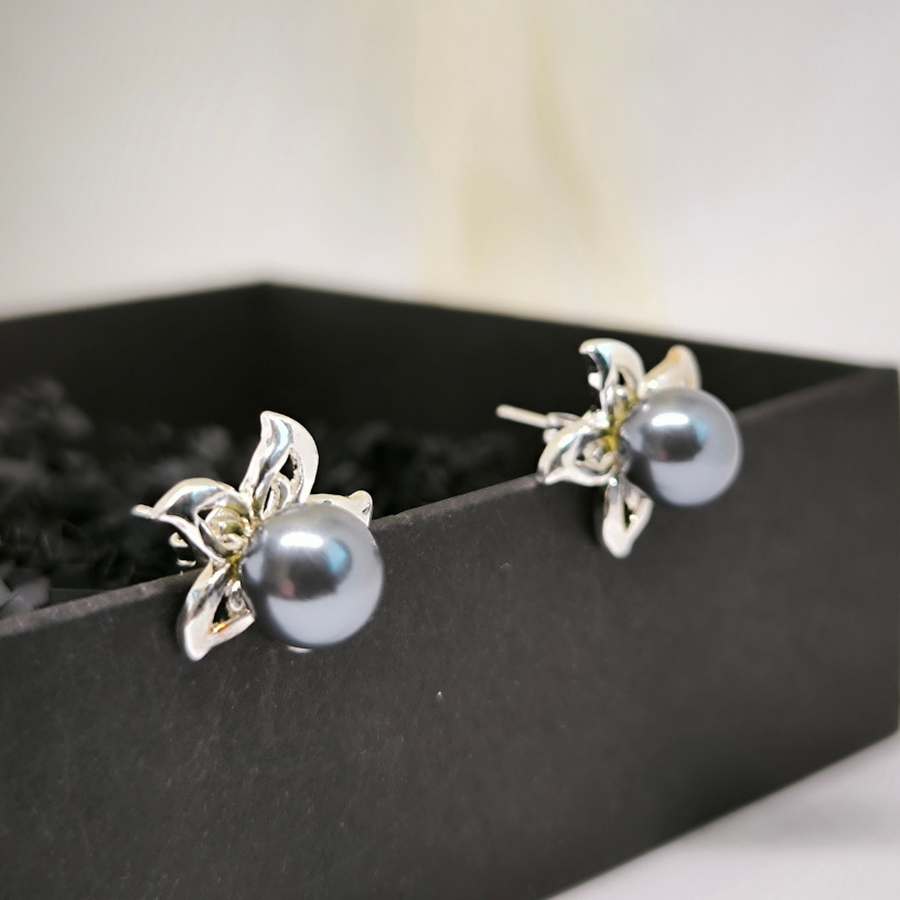 Võluvad kõrvarõngad „Lilled“ – elegantne aksessuaar, kaunistatud halli pärlimitatsiooniga helmega. Ideaalne nii tööle kui ka erilisteks puhkudeks.