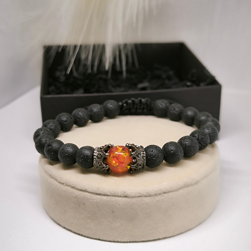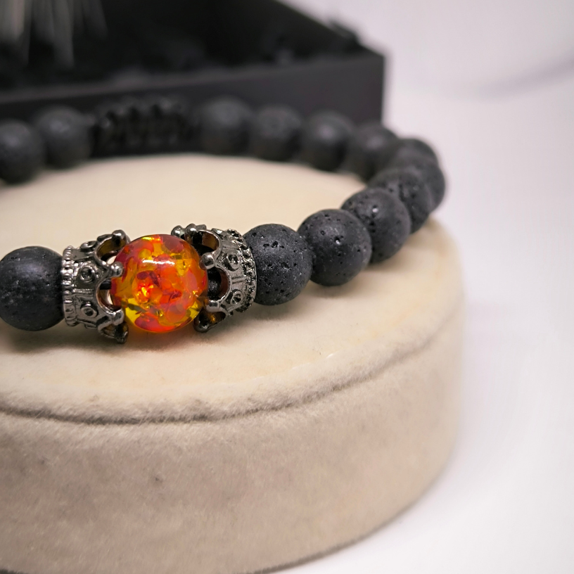 🌋 Energeetiline laavakivist helmestega käevõru – kaitse ja taassünni sümbol! 👑