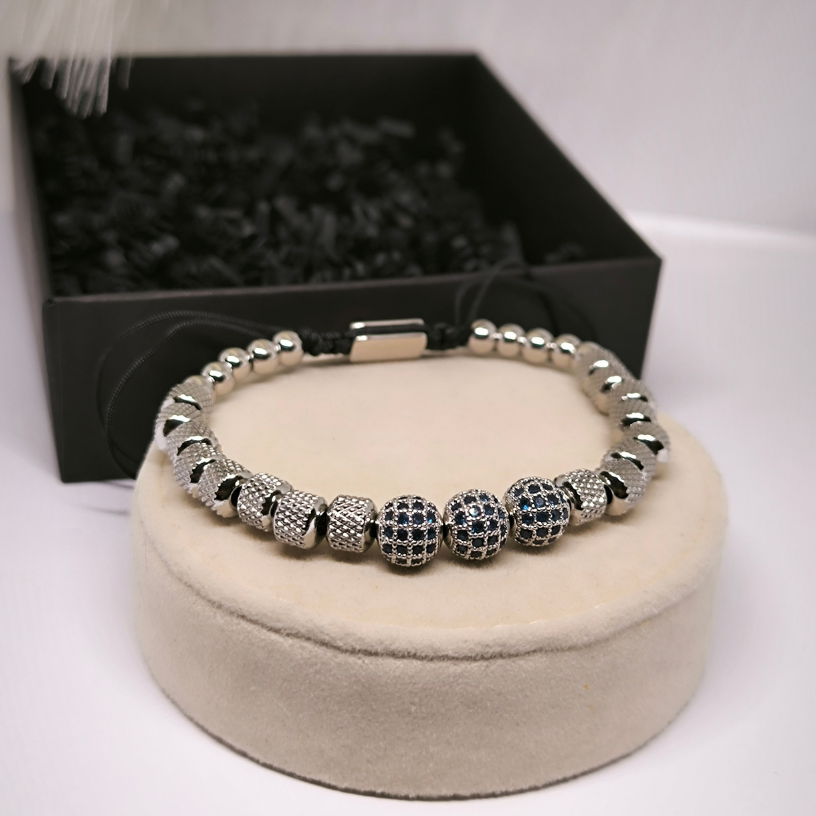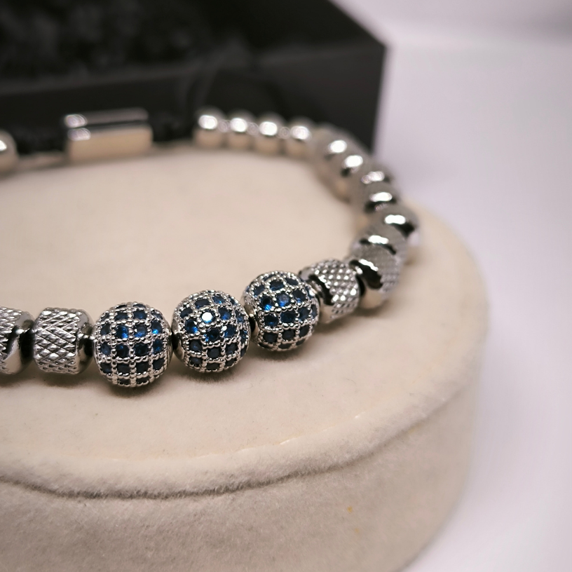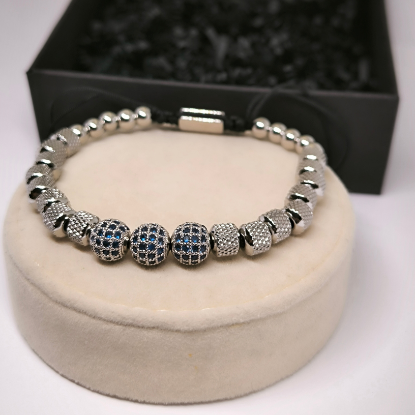 Otsid luksust, mis on peen, kuid pilkupüüdev? Käevõru „Royal Steel“ on elegantne aksessuaar siniste tsirkooniumkristallidega, mis säravad veetlevalt metallsfäärides 🟦✨.