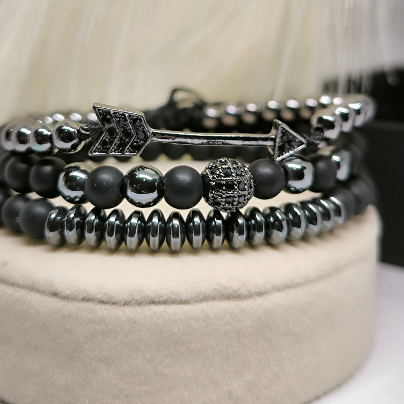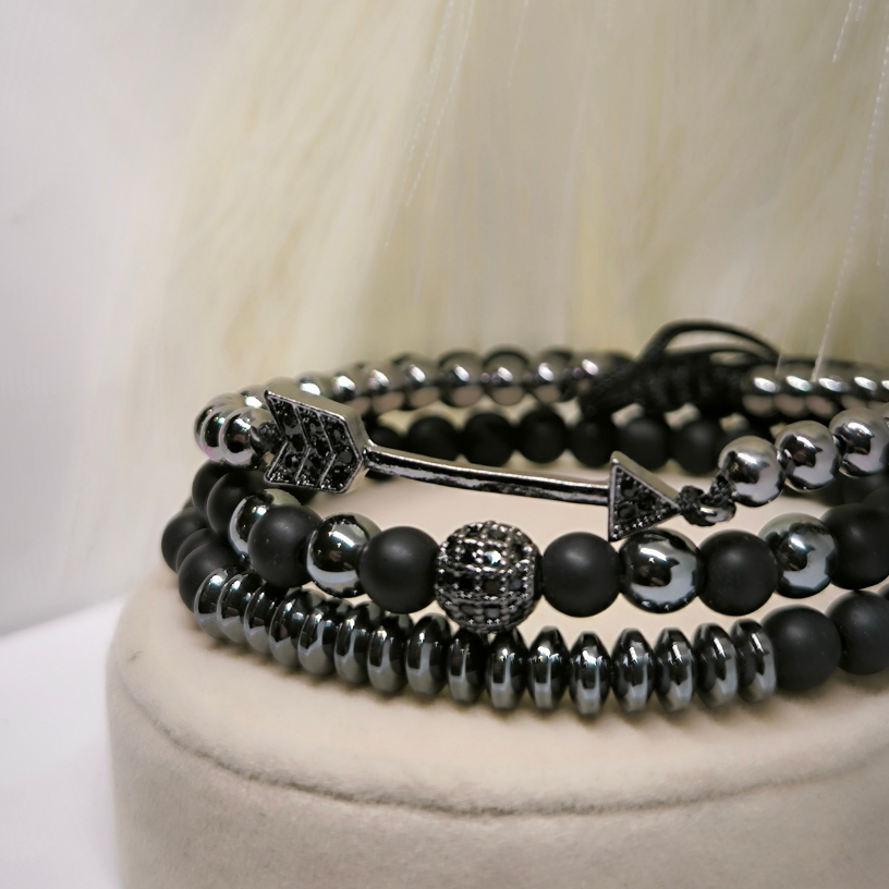 Käevõrude komplekt „Teeotsija“ – ainulaadne aksessuaaride komplekt meestele, kes soovivad leida oma tee ja väljendada oma stiili. Looduslikud helmed, metallist detailid ja tähendusrikas sümboolika annavad sellele komplektile ainulaadsuse ja jõulisuse.