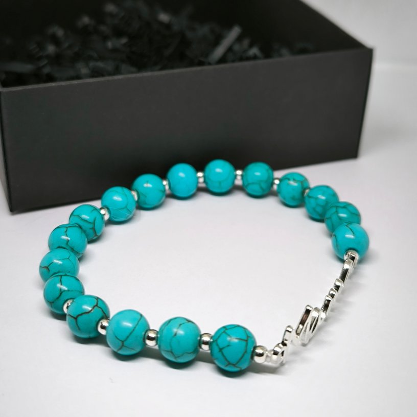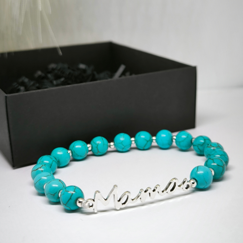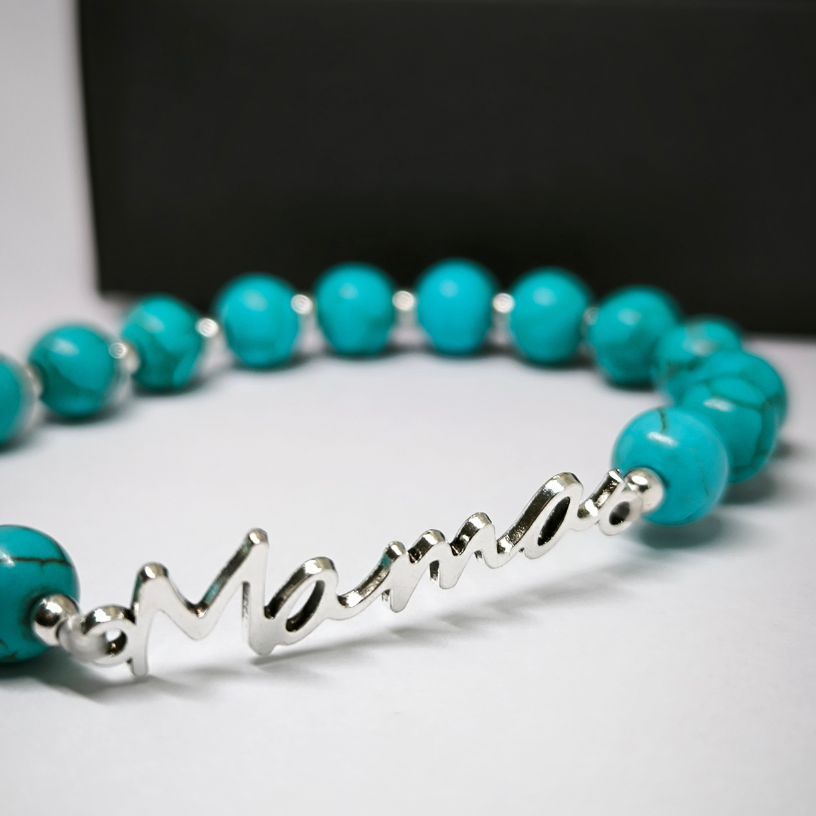 💙 Otsid emotsionaalset ja ainulaadset kingitust emale? Käsitööna valminud käevõru „Mama“ siniste türkiisist kividega – see pole mitte ainult aksessuaar, vaid ka armastuse sümbol, mis meenutab iga päev lähedast sidet 🤍