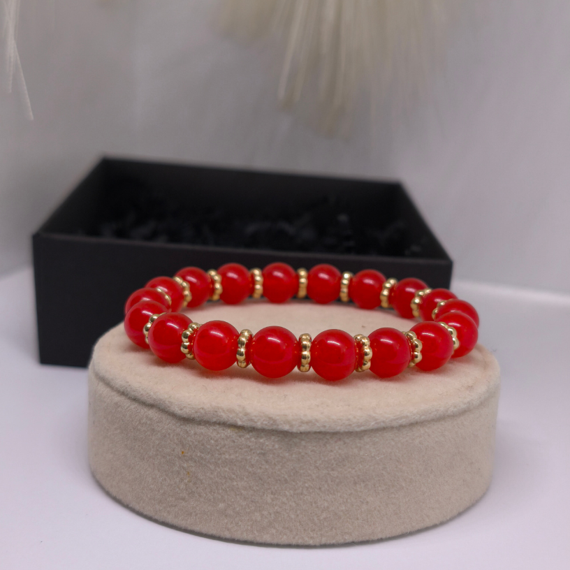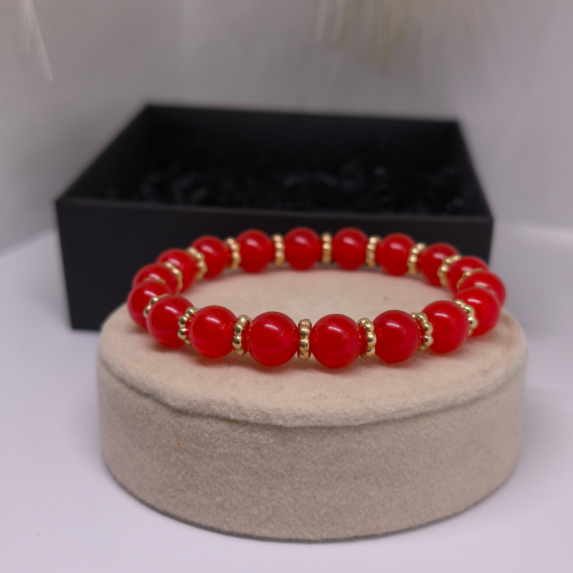 🔴 Punane värv sümboliseerib kirge, julgust ja elujõudu – seetõttu on see käevõru sinu energia ja enesekindluse allikas.