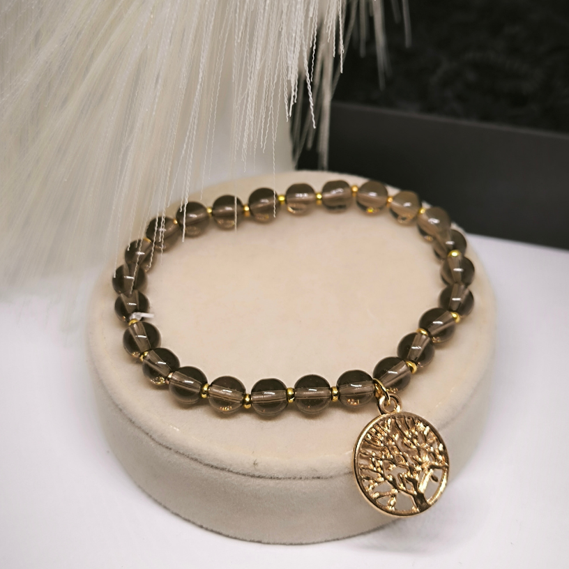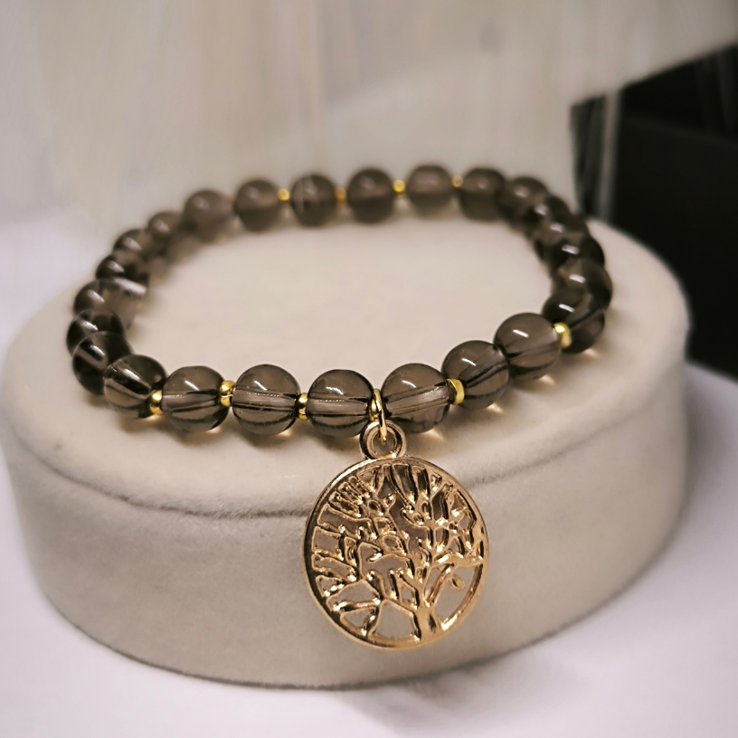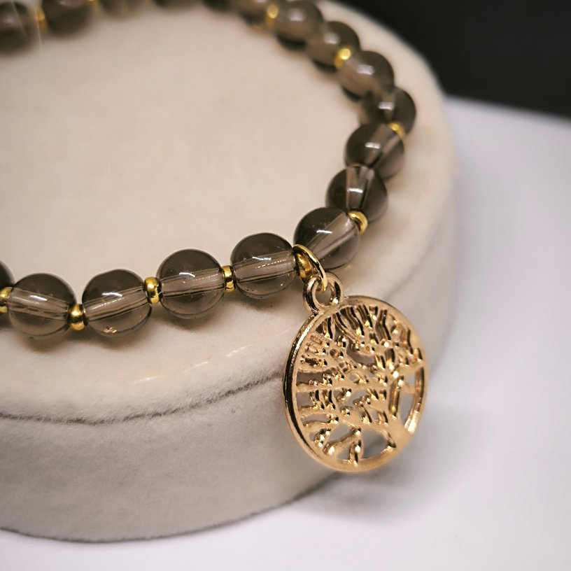 Valmistatud kõrgeima kvaliteediga suitsuopaali helmestest, see käevõru peegeldab peent stiili ja luksust. Kuldvärvi detailid lisavad lisavõlu ning see ehe sobib suurepäraselt nii igapäevaseks kandmiseks kui ka erilisteks puhkudeks.