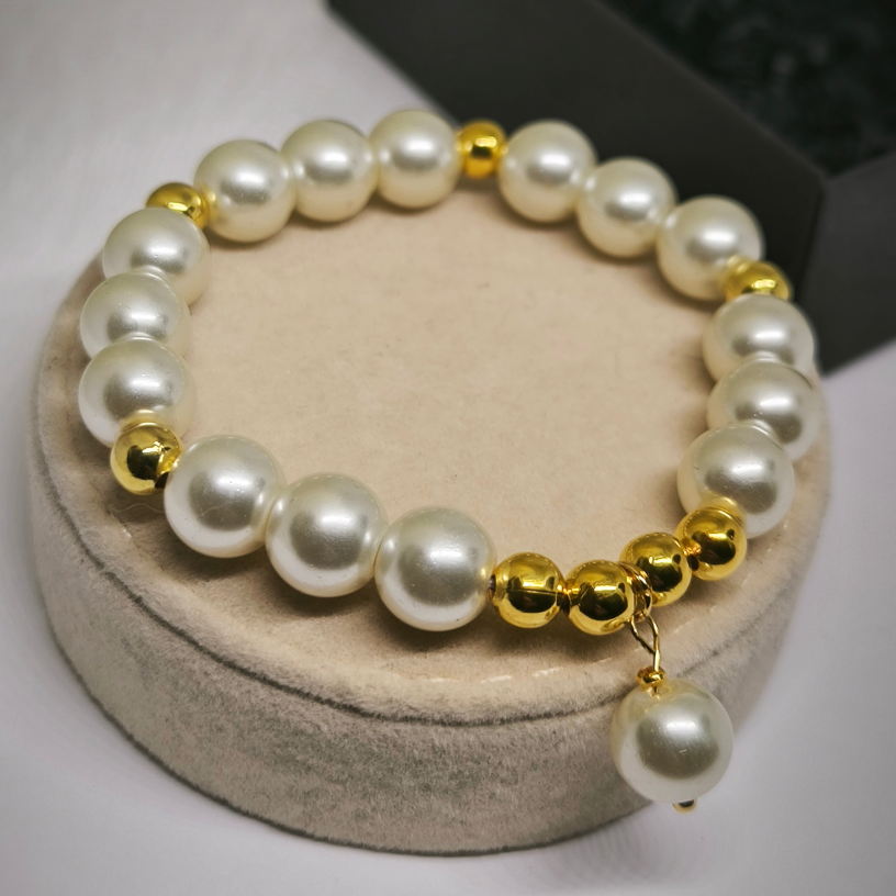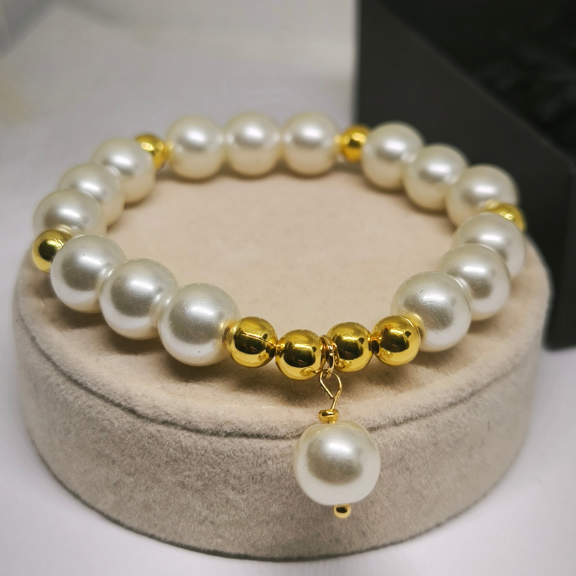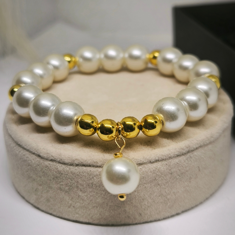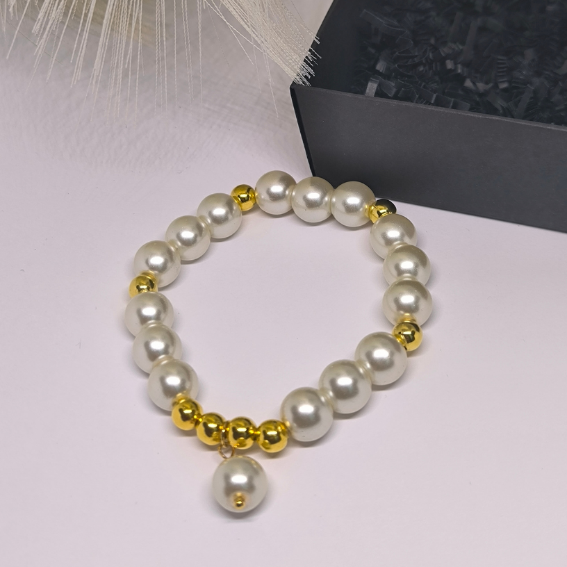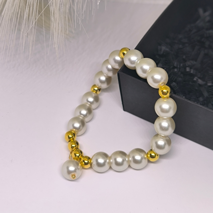 Iga käsitööna valminud käevõru on ainulaadne teos, loodud armastuse ja täpsusega. See klaashelmestega käevõru kuldsete aktsentidega kiirgab klassikalist elegantsi ja naiselikku rafineeritust. 🤍✨