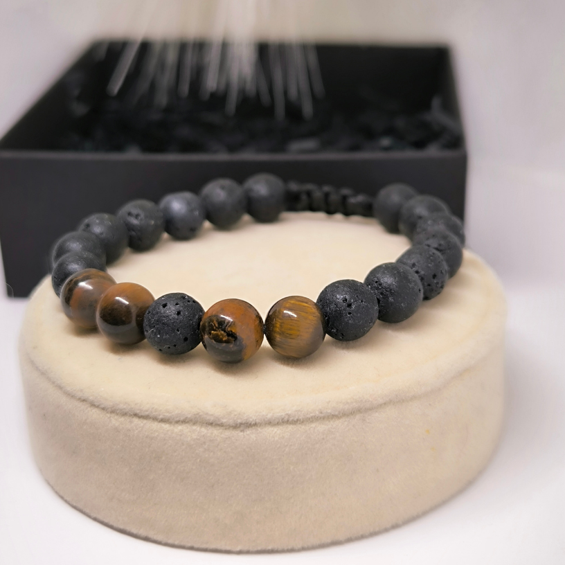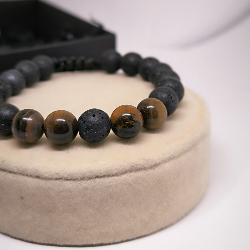 💎 Kaitse ja edu ühes aksessuaaris! See lava ja tiigrisilma helmestega käevõru on rohkem kui lihtsalt stiilne ehe – see on sisemise tugevuse ja kaitse sümbol. Lava kivi aitab vähendada emotsionaalset pinget, stabiliseerib energiat, samas kui tiigrisilm suurendab enesekindlust, aitab teha tähtsaid otsuseid ja toob edu ellu.