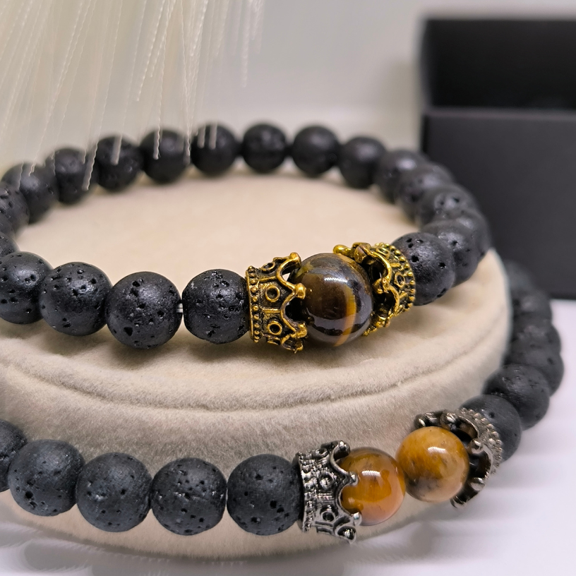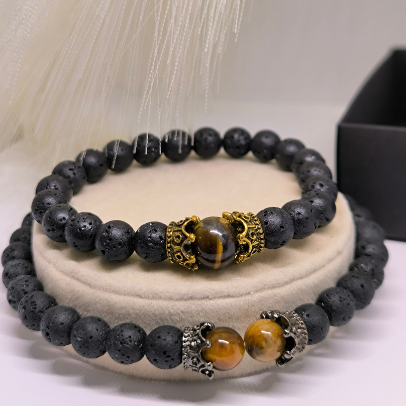 🔥 Laavakivist helmeste käevõrude komplekt Tiigrisilma kiviga – stiil ja energia!