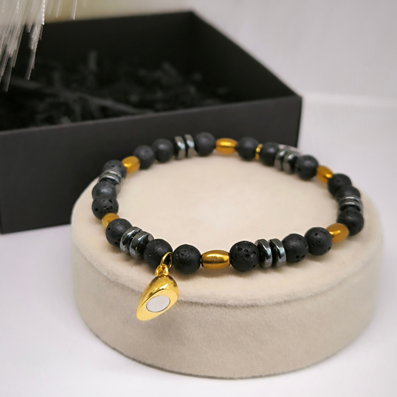 ✅ Kõrgekvaliteedilised materjalid – laava- ja hematiidihelmed koos elegantsete kuldsete aktsentidega.