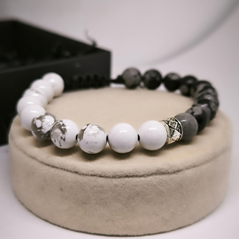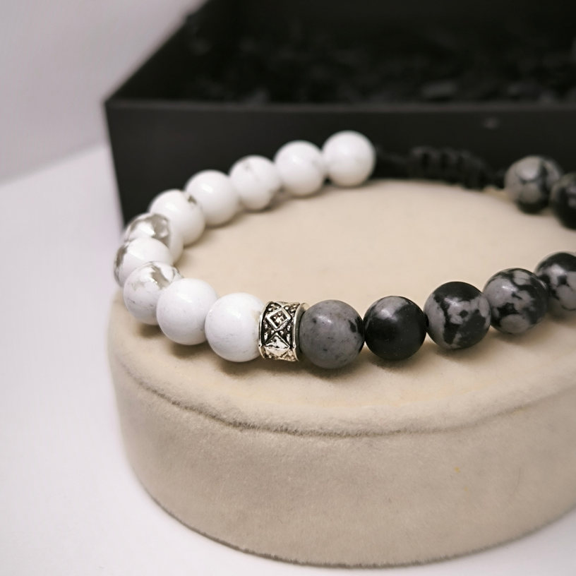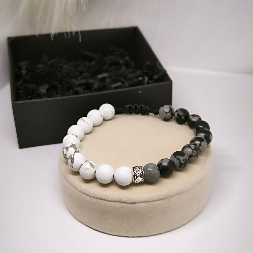 Energiakäevõru mustadest ja valgetest onükshelmestest – stiilne ja tähendusrikas aksessuaar, mis aitab vähendada pinget ja väsimust. Universaalne suurus, mugav igapäevaseks kandmiseks.