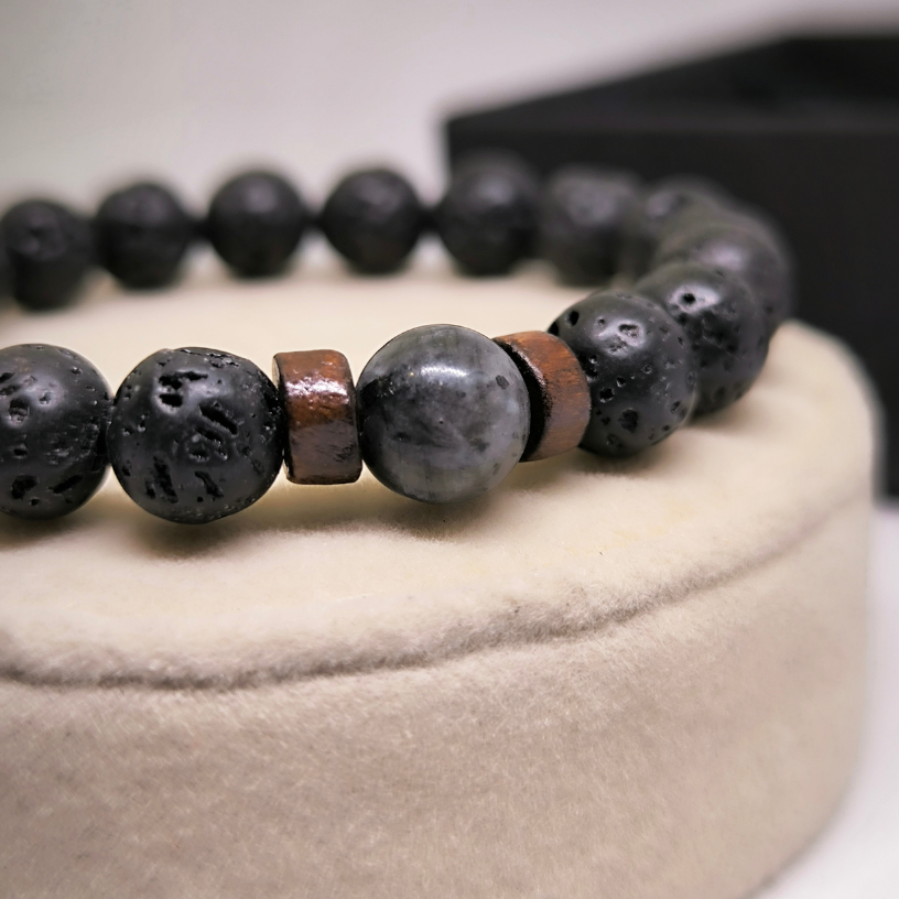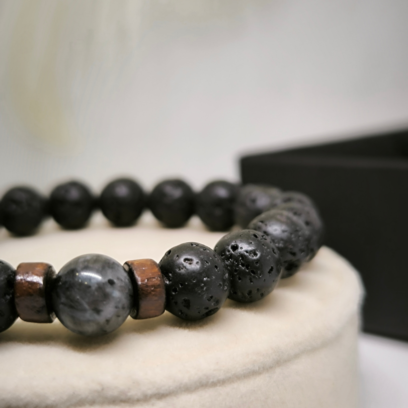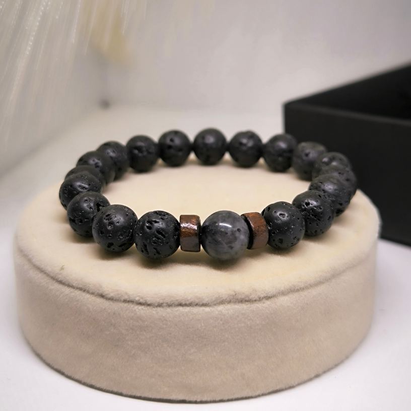 Täienda oma välimust erilise laavakivide käevõruga, millel on loomulik puidust aktsent! 🌑🌿✨