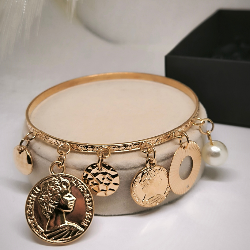 💎 Otsite aksessuaare, mis rõhutaksid teie naiselikkust ja stiili? See nelja käevõru komplekt kuldsete ja valgete aktsentidega on ideaalne valik. Õrn disain ja võimalus kombineerida käevõrusid omavahel pakub palju vabadust unikaalsete välimuste loomiseks.