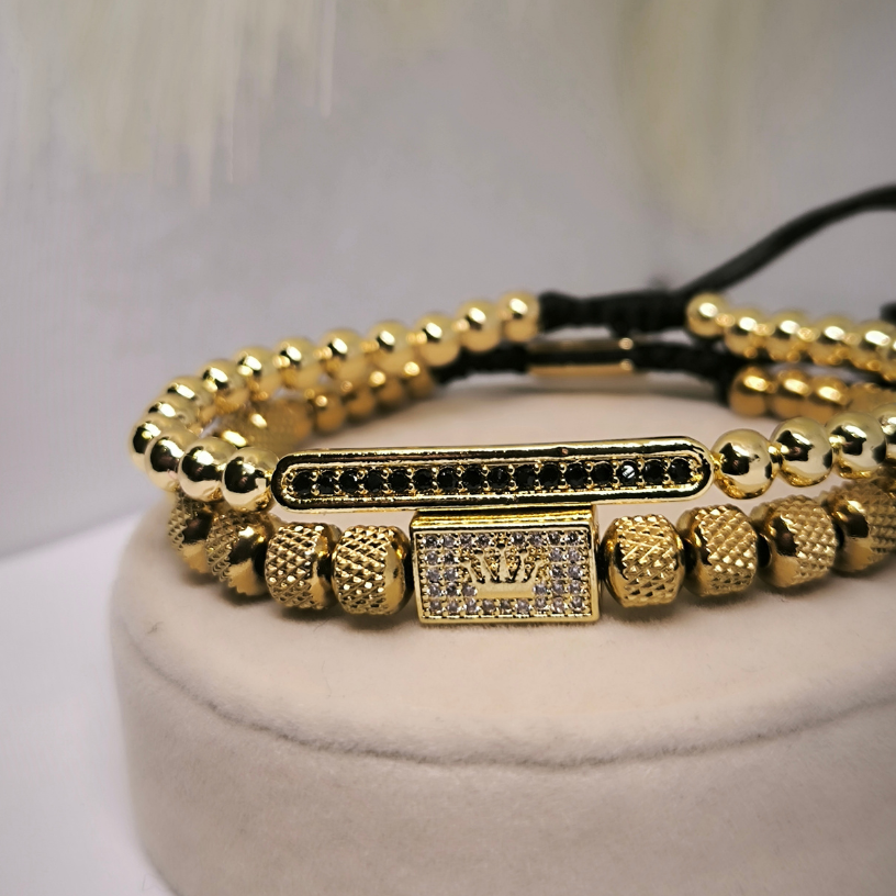 Kas otsite aksessuaari, mis kohe lisab soliidust ja elegantsi? Need kuldse värvusega käevõrud koos tsirkoonkrooniga on ideaalne valik neile, kes hindavad luksuslikku ja enesekindlat välimust.