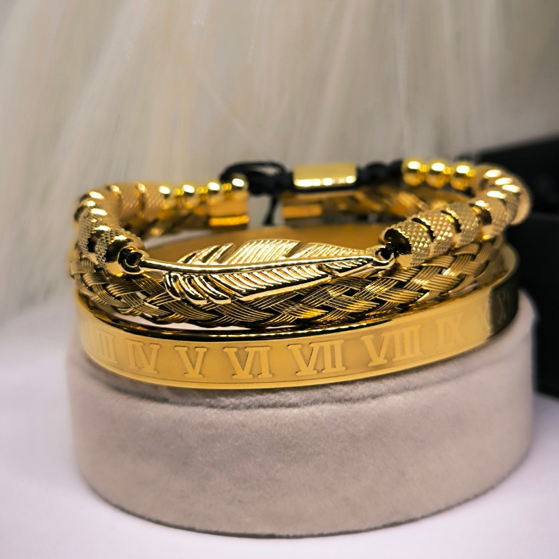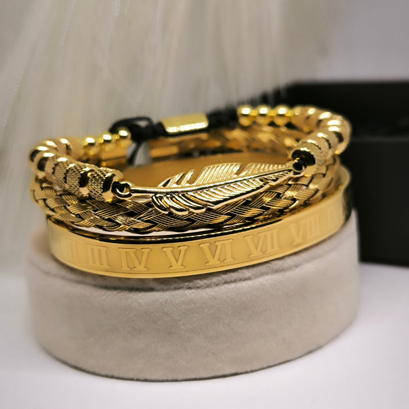 💎 Kas otsite aksessuaare, mis eristuksid rahvahulgast ja lisaksid teie stiilile luksust? See käevõrude komplekt on loodud nooruslikule, julgele ja enesekindlale mehele. Kolme erineva disainiga käevõrud võimaldavad hõlpsasti stiili muuta ja luua unikaalseid kombinatsioone. Kuldne värv ja roostevaba terase kvaliteet tagavad vastupidavuse ja laitmatu välimuse.