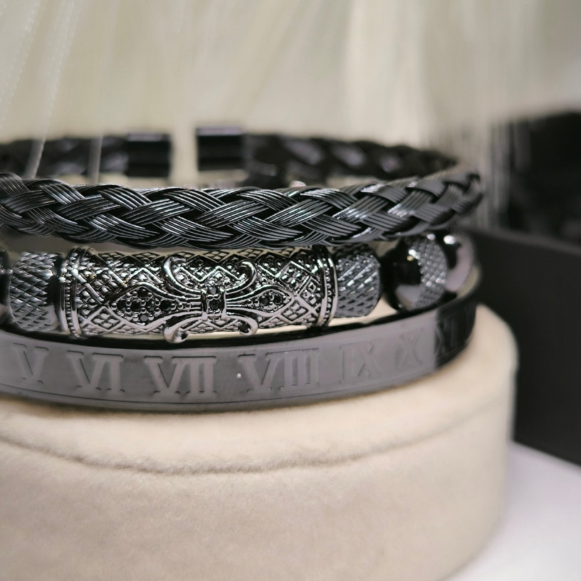 💎 Kas otsite aksessuaare, mis annaksid teie välimusele erilisust? See kolme käevõru komplekt on valmistatud kõrgekvaliteedilisest roostevabast terasest, mis tagab vastupidavuse ja laitmatu välimuse. Must disain peente graveeringutega loob müstilise, kuid rafineeritud välimuse, mis võimaldab teil rahvahulgast silma paista.