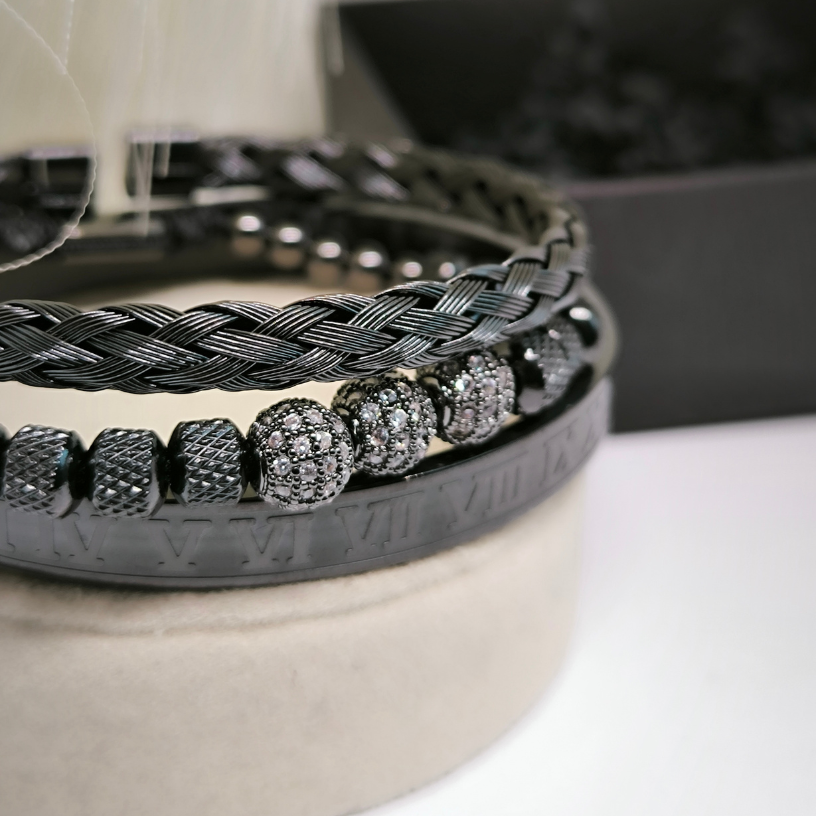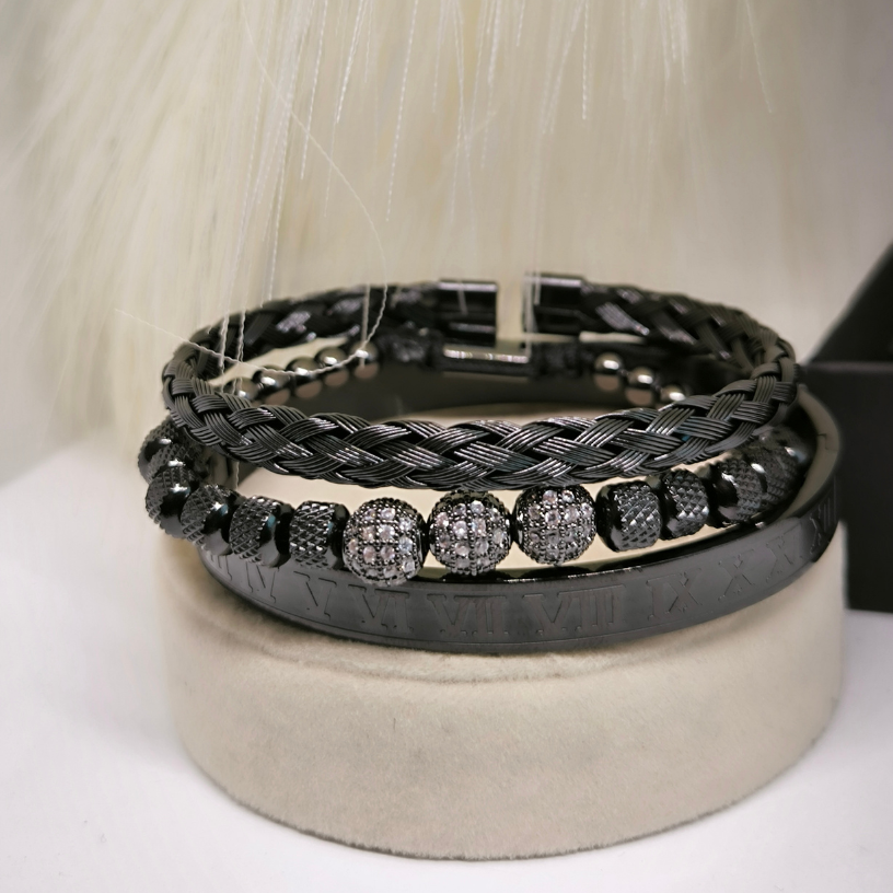 - 🔄 Reguleeritav suurus – kaks käevõru on reguleeritavad ja üks (rooma numbritega) on mugava kinnitusega (ümbermõõt ~20 cm), sobides enamikele meestele.