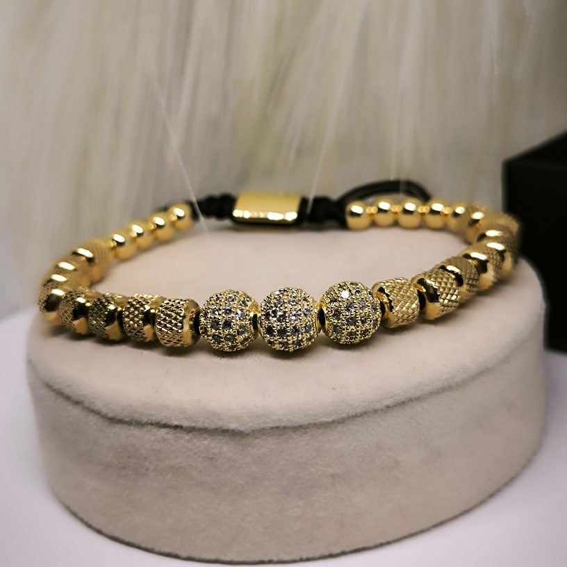 Tsirkooniumiga kuldse värviga meeste käevõrude komplekt
