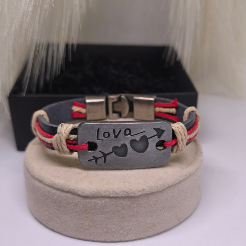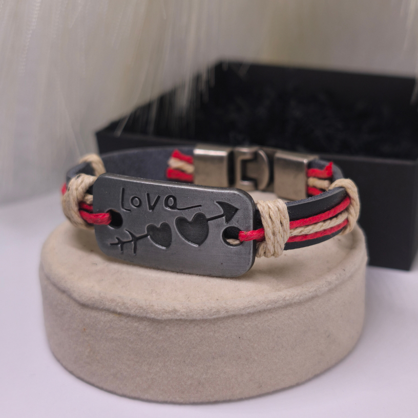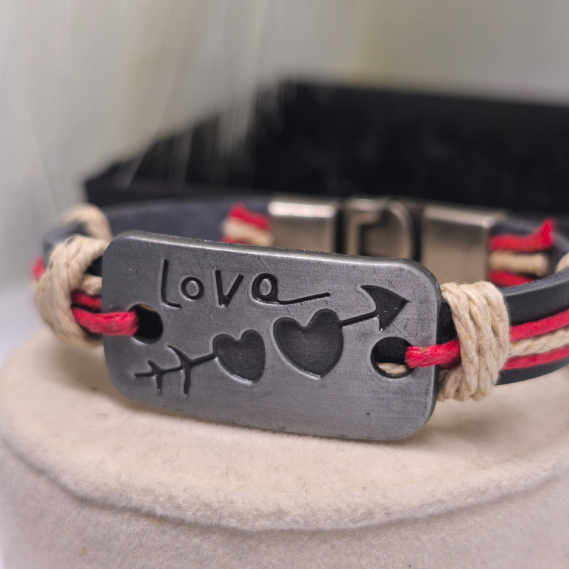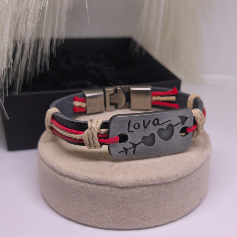 💖 „Südametee“ käevõru – see on armastuse sümboliks saanud aksessuaar, mis ühendab stiili, soojust ja tundeid. Tugeval looduslikust nahast ja niitidest rihmal on paigutatud metallplaat graveeritud kirjaga „Love“ ja südametega, mis sümboliseerivad ühist eluteed 💞.