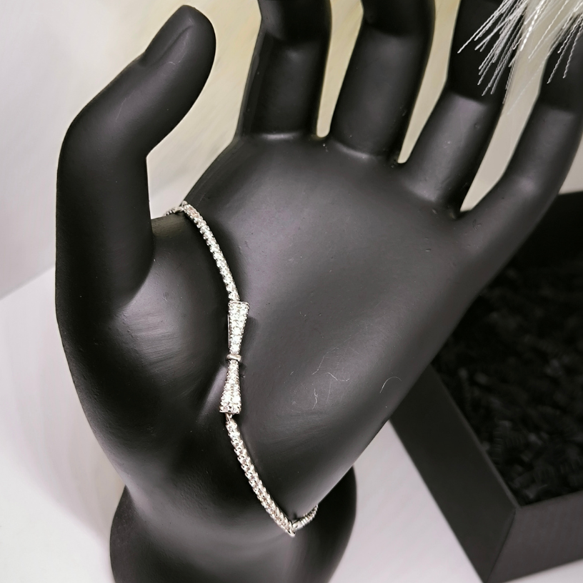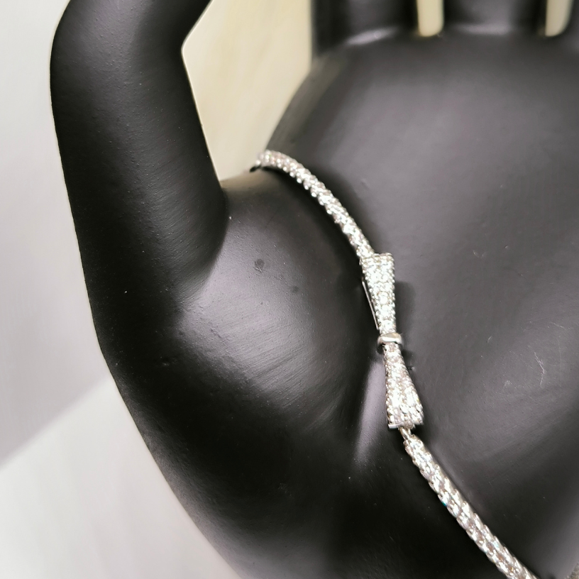 💎 Otsite peent, kuid mängulist ehet, mis lisab teie välimusele võlu? See lipsukujuline käevõru on ideaalne valik naistele, kes hindavad elegantsi ja nooruslikku stiili. Tsirkoonkivi annab käevõrule sära ja rafineerituse, samas kui lipsuelement lisab mängulisust ja erilisust.