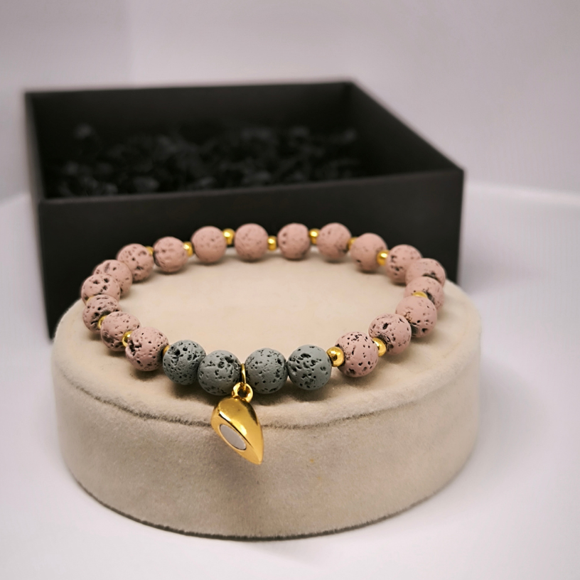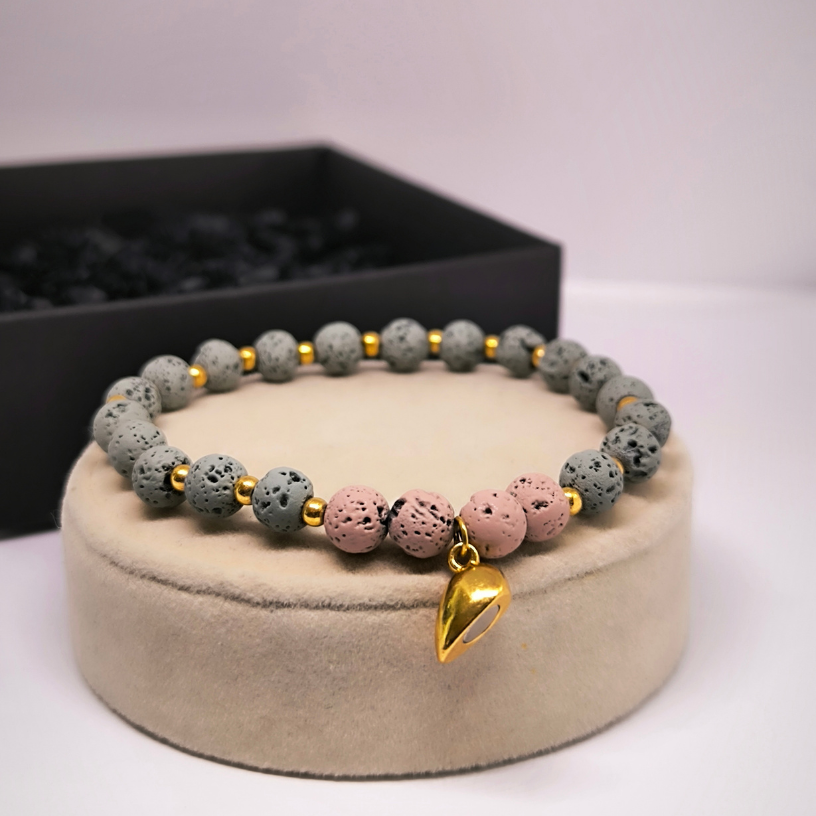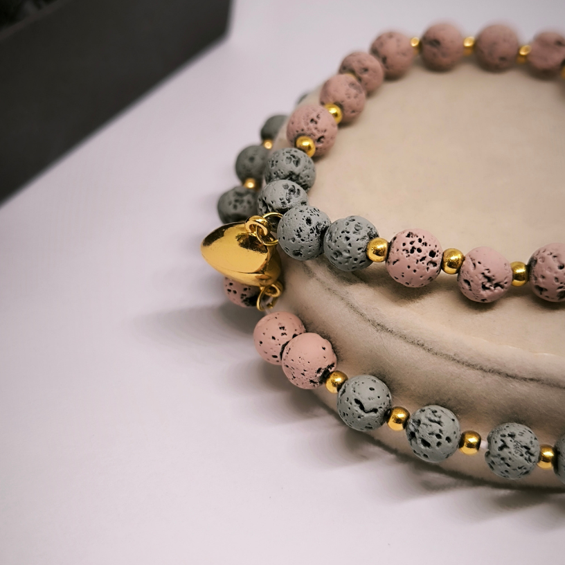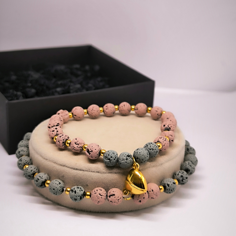 Avastage ainulaadne võimalus näidata oma armastust ja lähedust selle käsitööna valminud käevõru komplektiga. Valmistatud looduslikest 🌋 laavakividest, käevõru mitte ainult ei kaunista, vaid kannab ka sügavat tähendust – laavakivi sümboliseerib tugevust, rahu ja vastupidavust.