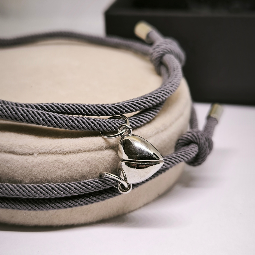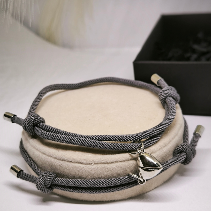 Kangast käevõrude komplekt ripatsiga paaridele – peen side sümbol armunud südametele! Stiilsed, mugavad ja reguleeritavad käevõrud ripatsiga meenutavad teie lähedust iga päev.