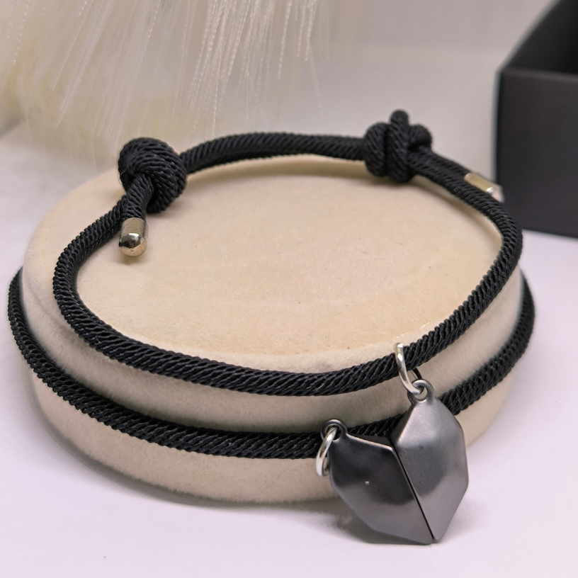 Ühendage stiilselt! Originaalse disainiga kangast käevõrude komplekt magnetilise ripatsiga – suurepärane viis sümboliseerida teie sidet armastatud inimesega.
