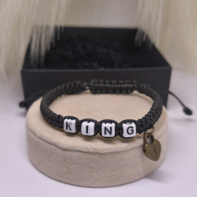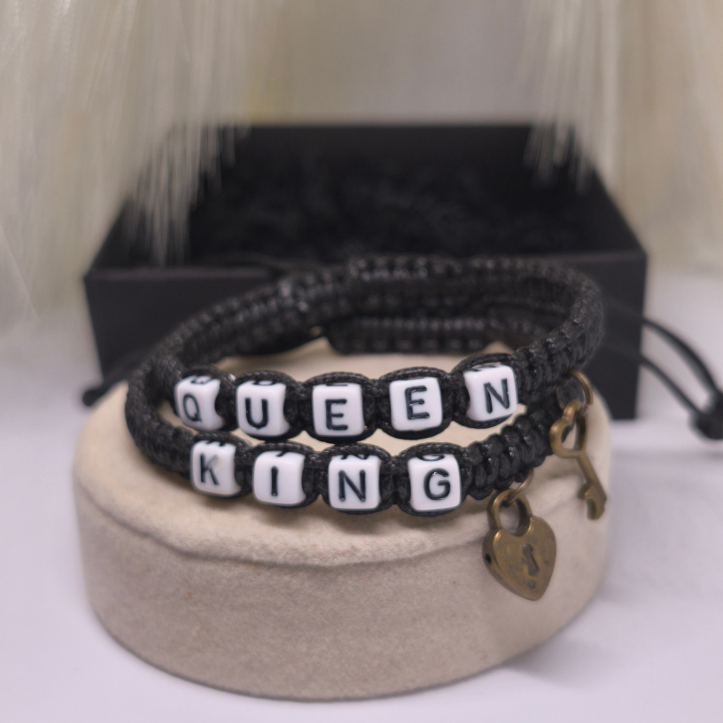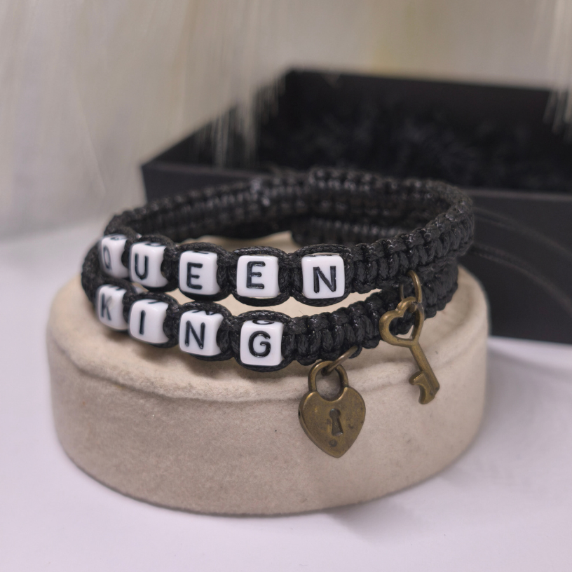 💑 Paari käevõrude komplekt „Südame võti“ – see pole mitte ainult stiilne aksessuaar, vaid ka sügava sideme sümbol kahe armastava inimese vahel. Kaks käevõru, millel on kiri KING ja QUEEN, peegeldavad täiuslikku paari harmooniat, ning väikesed ripatsi kujundid – süda ja võti 🔒🔑 – meenutavad, et tõeline armastus leiab alati tee südamesse ❤️.