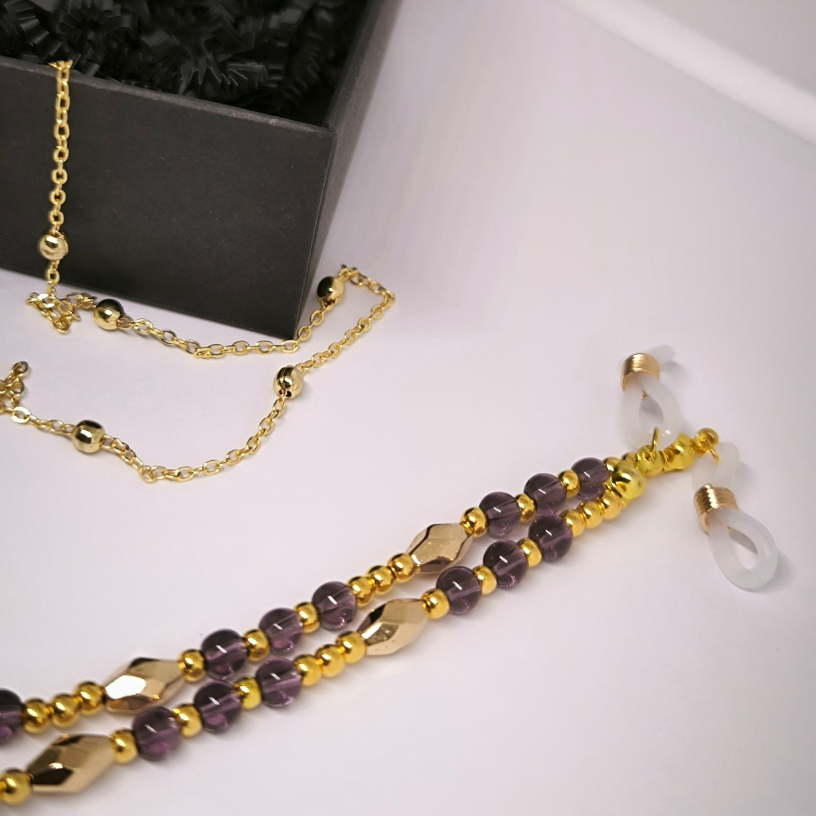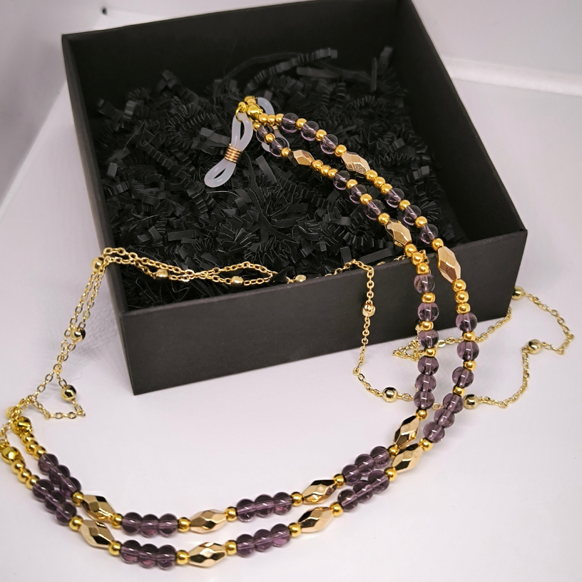 See ainulaadne käsitööna valmistatud prillikett on loodud neile, kes hindavad mitte ainult mugavust, vaid ka unikaalset stiili. Valmistatud luksuslikest suitsuse opaali helmestest 🌫️ ja kaunistatud kuldsete detailidega 💛, kett lisab õrnalt ilu ja ainulaadsust teie igapäevaellu.