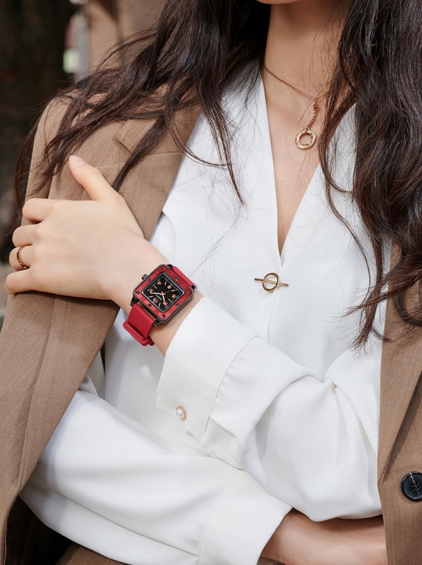 See unikaalse disainiga naiste käekell sobib suurepäraselt neile, kes armastavad eredaid aktsente ja modernset stiili. Ruudukujuline korpus annab kellale erilisuse, samas kui punane silikoonrihm näeb mitte ainult stiilne välja, vaid tagab ka mugavuse ja vastupidavuse.