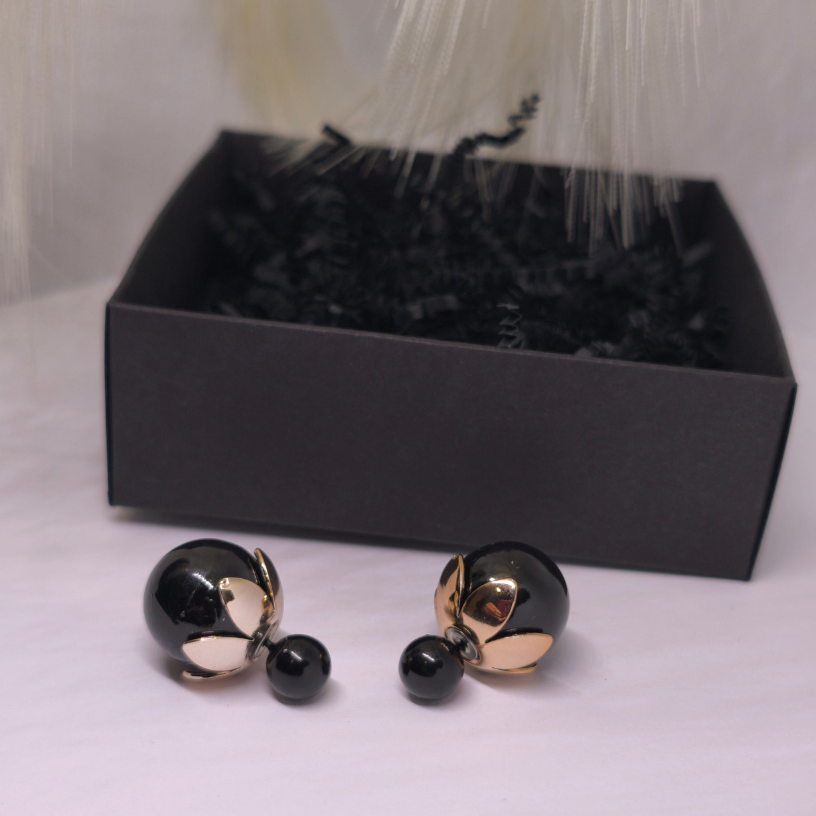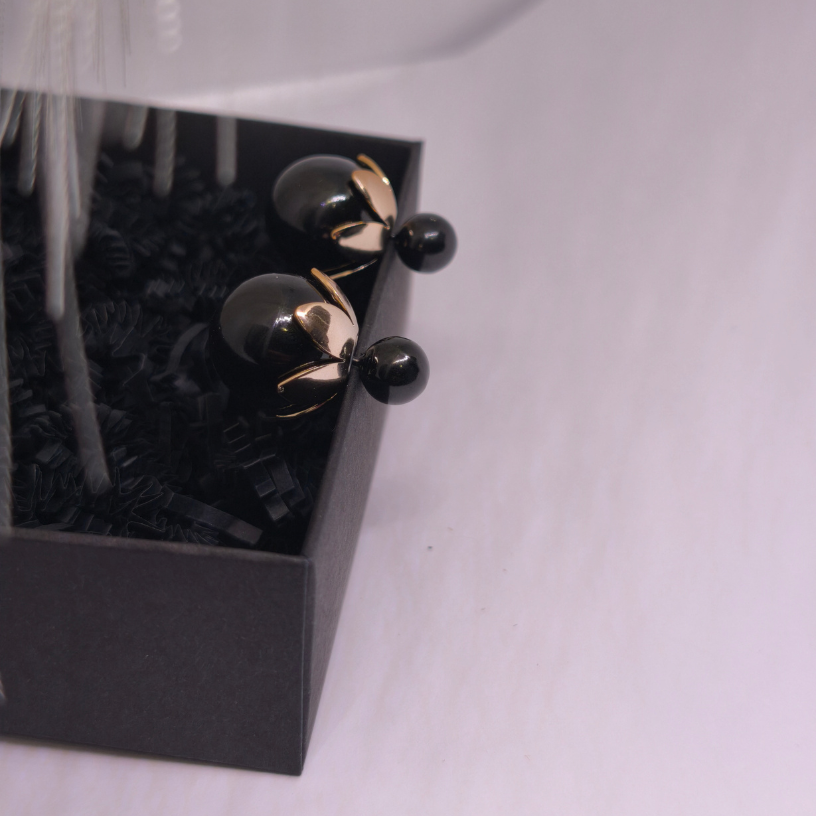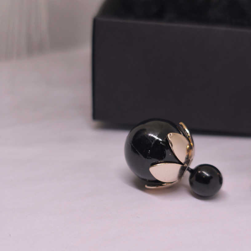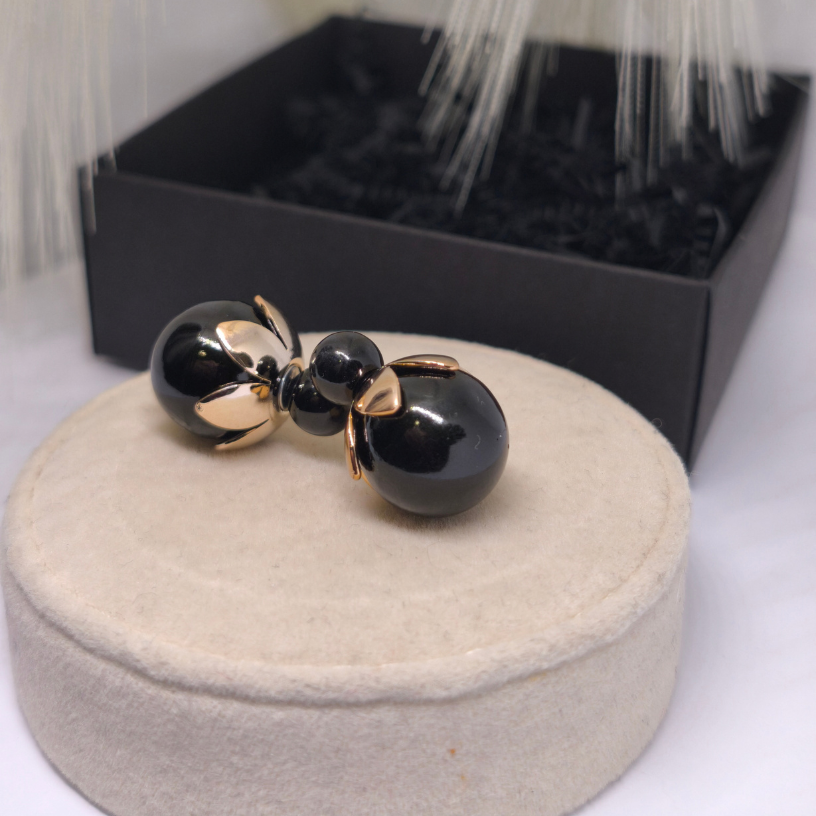 💎 Läikivad mustad sfäärid sümboliseerivad enesekindlust, sügavat naiselikku energiat ja peenetundelisust, samas kui kuldne detailid lisavad soojust, luksust ja erilisust. Koos loovad need mulje, mis köidab pilke ja rõhutab iga naise ainulaadsust.