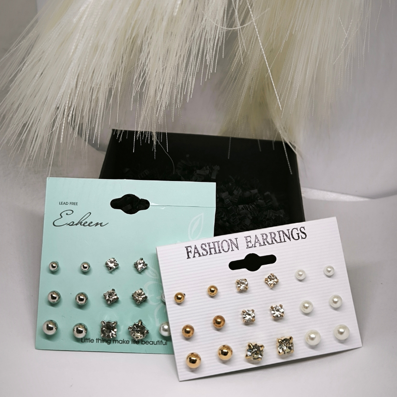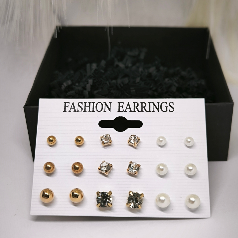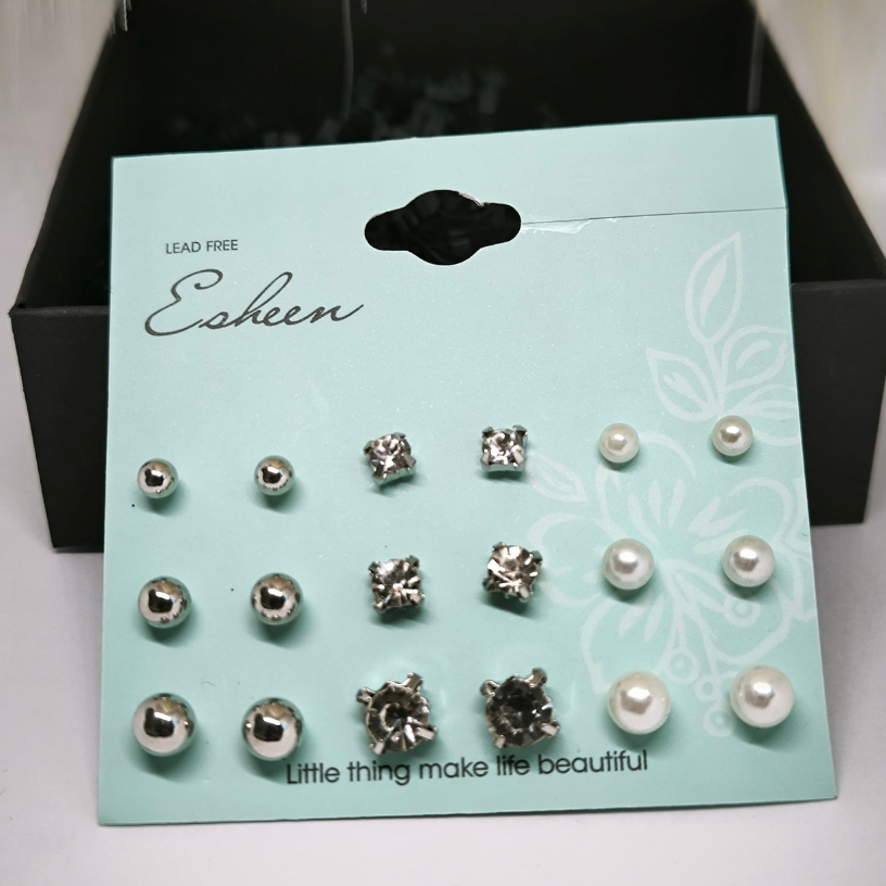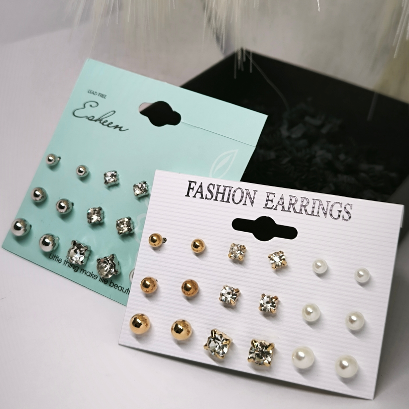 See imeline aksessuaaride komplekt, mis koosneb 9 paari erineva kujuga kõrvarõngastest, lisab teie stiilile elegantsi ja peenust. ✨ Kombineerige erineva suurusega kristallide ja pärlite detaile vastavalt oma tujule ja looge unikaalseid kombinatsioone, mis aitavad teil rahvahulgast silma paista. 👑