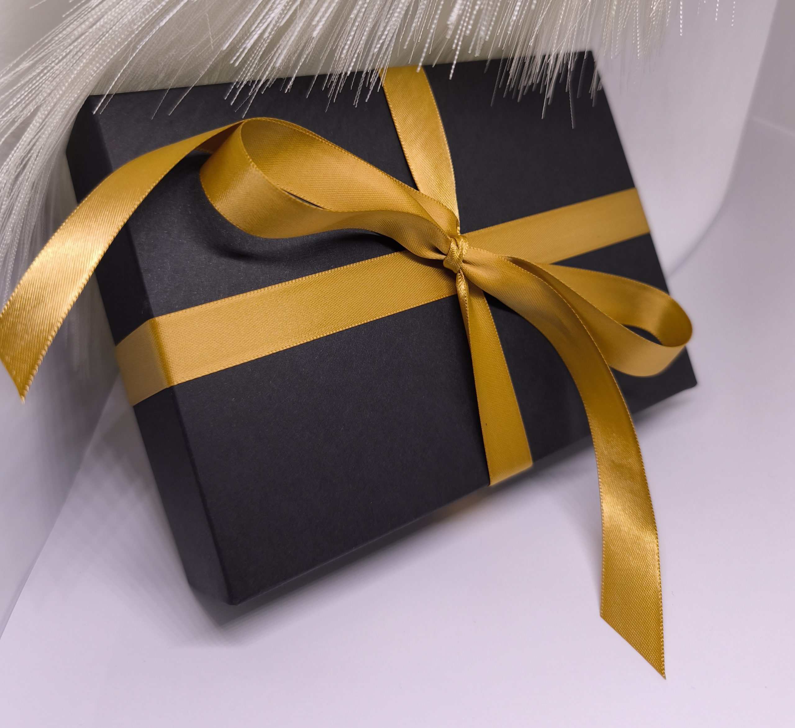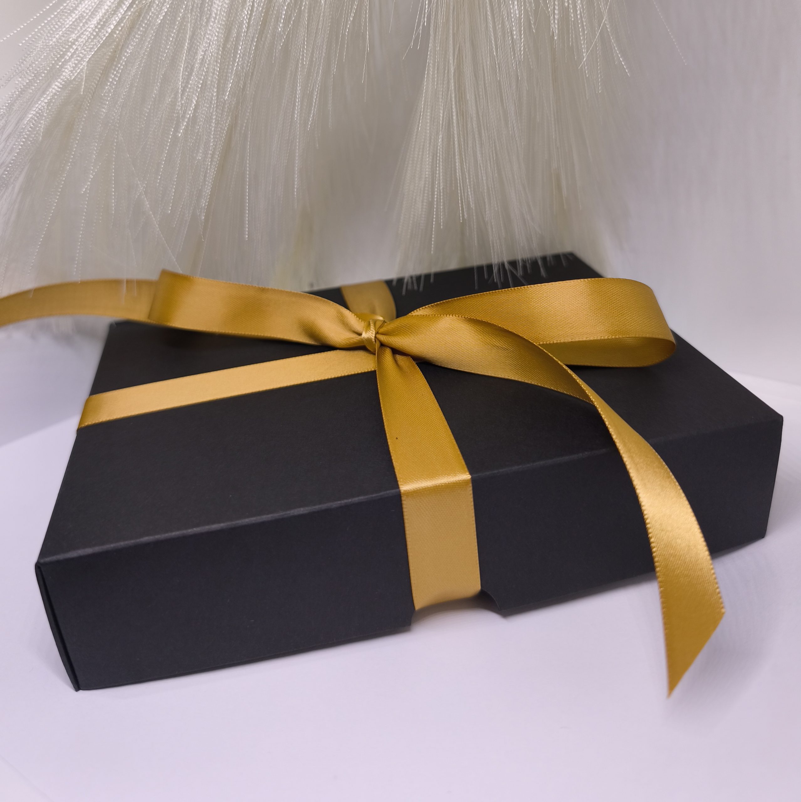 🖤 Must kinkekarp kuldse lindiga – see ei ole lihtsalt karp, vaid elegantne stiilielement, mis lisab teie kingitusele luksuslikkust ja terviklikkust.