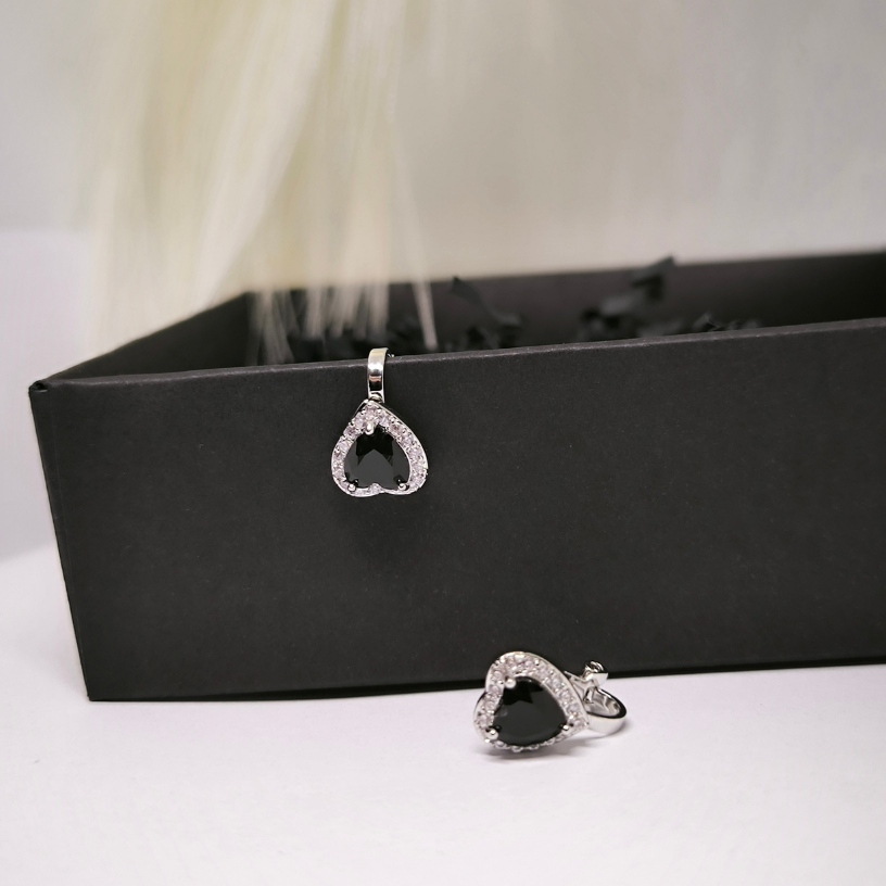 • Värv: hõbedane musta südame kiviga.