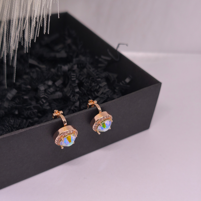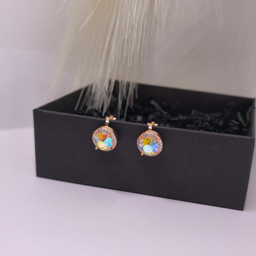 Kõrvarõngad-klipsid „Päikesekiir“ – mängulised, kuldset värvi kõrvarõngad erksa, mitmevärvilise kristalliga ja mugava klipsimehhanismiga. Erakordne aksessuaar ilma kõrvaauguta – sobib suurepäraselt nii igapäevaseks kandmiseks kui ka pidustusteks.
